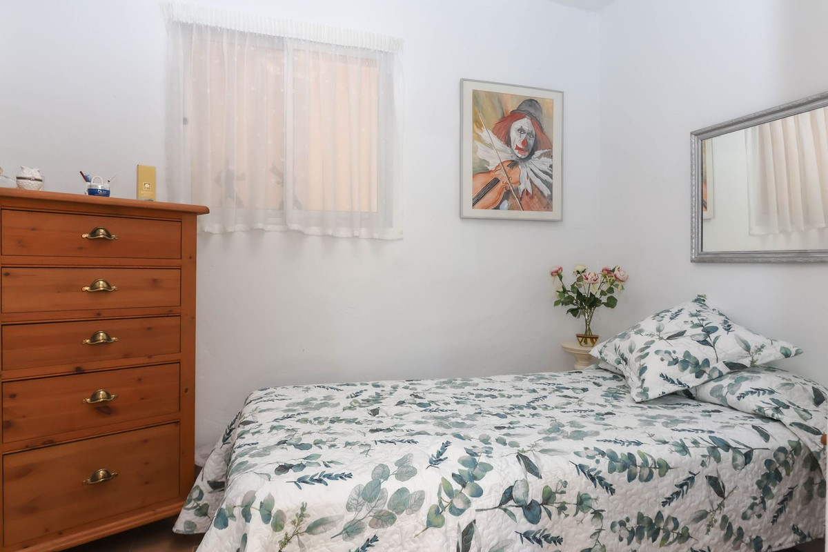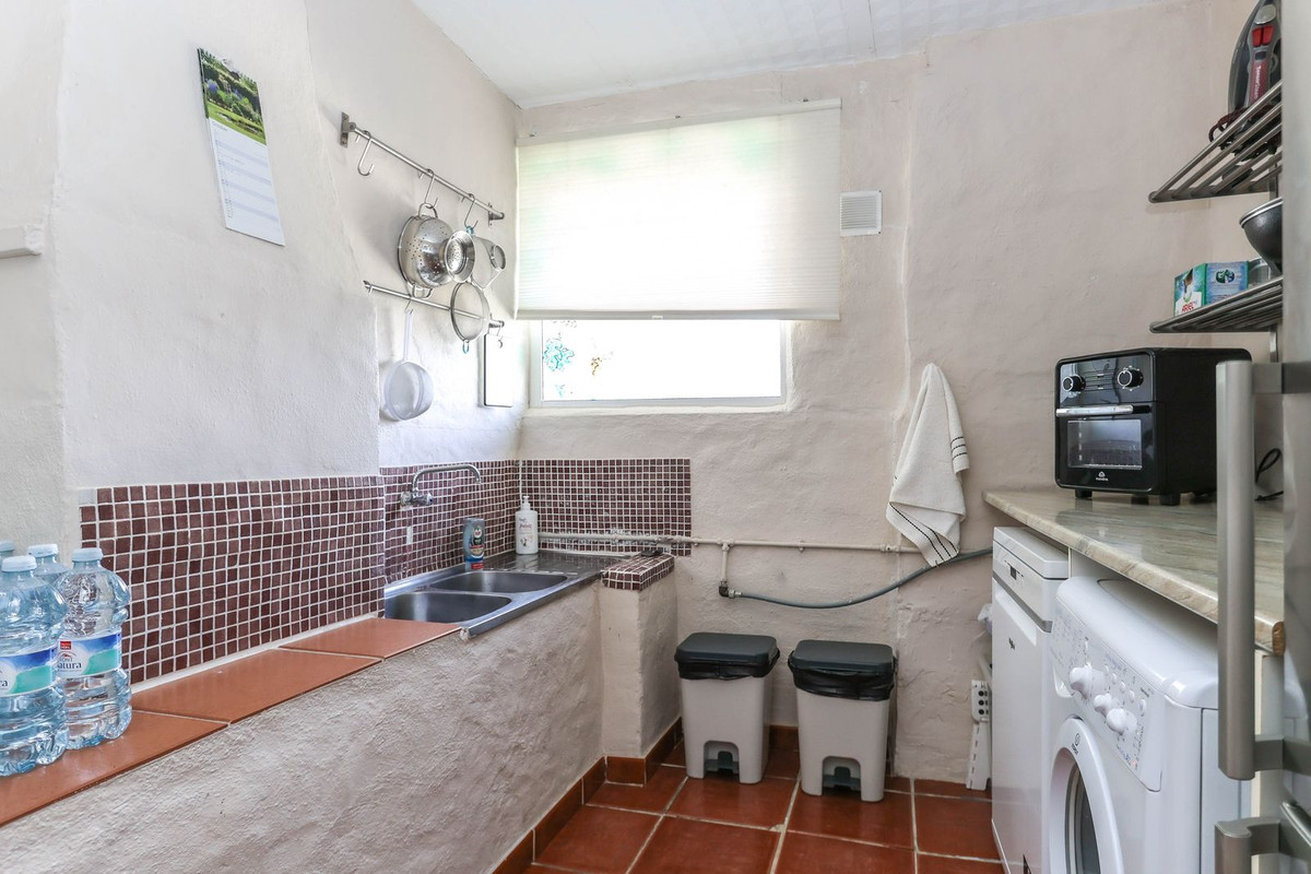 En entrant dans la cuisine, vous découvrirez la partie originale de la propriété, ornée d'une cheminée traditionnelle qui la met en valeur. La cuisine entièrement équipée, avec son coin salon confortable, en fait un agréable espace de vie convivial. La buanderie se trouve sur le côté de la cuisine. Le salon, situé au centre de la propriété, communique avec la cuisine et donne directement accès à l'une des chambres. Une salle de bains et une deuxième chambre se trouvent également dans cette partie de la propriété.