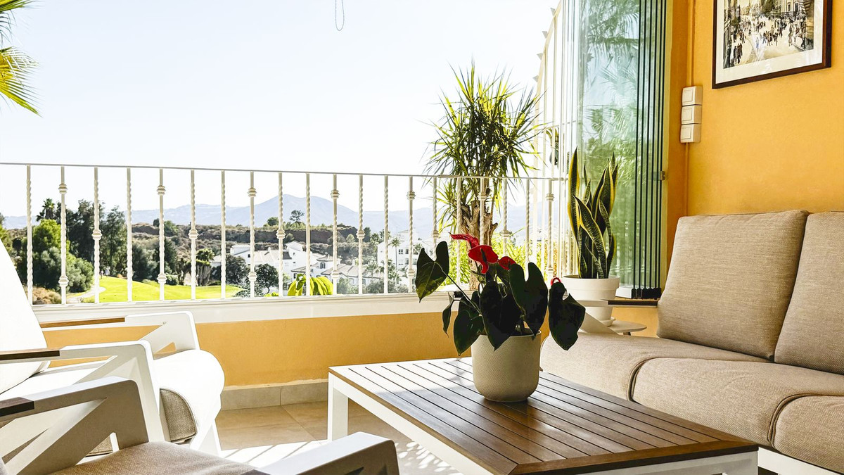 Le complexe immobilier est exceptionnellement bien entretenu, offrant une sensation d'espace et une vue imprenable sur le golf et les montagnes. Il s'apparente davantage à un manoir qu'à un complexe d'appartements espagnol typique. Les équipements communs comprennent le Wi-Fi dans tout l'immeuble, une mini-salle de sport, un sauna, une laverie, des espaces de détente couverts, des jardins tropicaux et une piscine attrayante. À voir absolument.