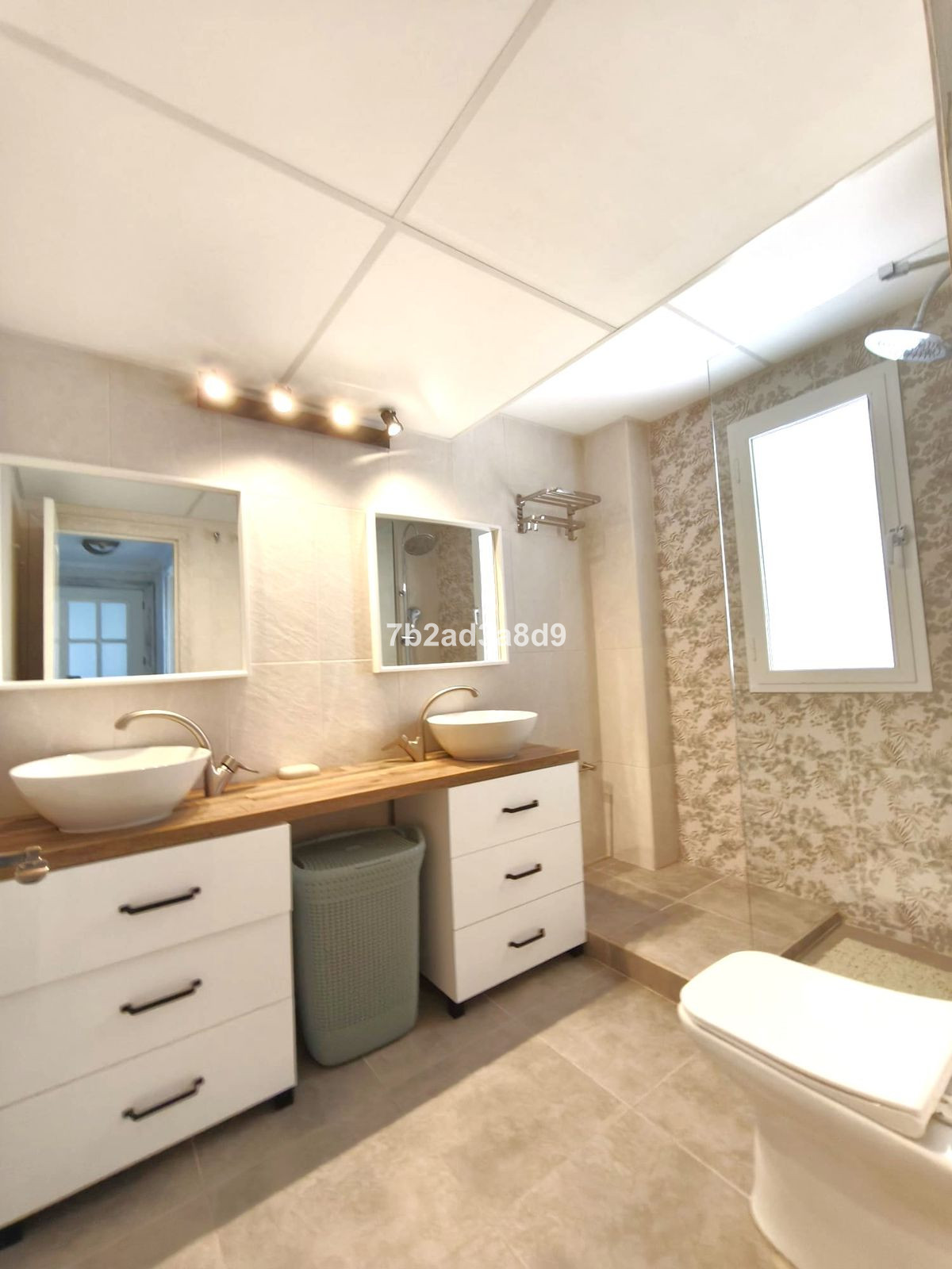 Magnifique penthouse de 100 m² entièrement rénové, comprenant 2 chambres, 2 salles de bains et une spacieuse terrasse de 25 m² orientée sud-ouest. Situé dans le complexe Lorcrimar III, à seulement cinq minutes à pied de Puerto Banús et à deux pas de la plage Mistral. La résidence fermée est très calme et dispose de jardins tropicaux, de deux piscines, de trois courts de paddle-tennis et d'installations accessibles aux personnes à mobilité réduite. Un emplacement privilégié, à proximité de tous les services, supermarchés, écoles, transports en commun, centres sportifs, clubs de golf et de tennis.