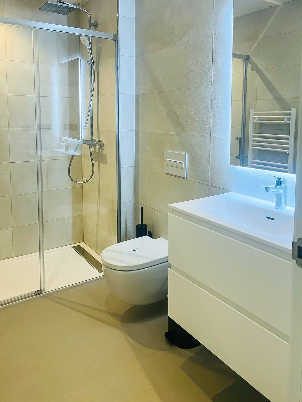 Un système domotique est également installé pour contrôler l'éclairage et les stores électriques. La climatisation et le chauffage au sol sont assurés par aérothermie. À noter : une buanderie spacieuse avec lave-linge et sèche-linge se trouve juste en face de la porte d'entrée. Une place de parking souterrain privée est également incluse dans le prix. Cette résidence exclusive et sécurisée comprend une grande piscine extérieure, une salle de sport ultramoderne, un espace commun, une salle de jeux et une entrée sécurisée.