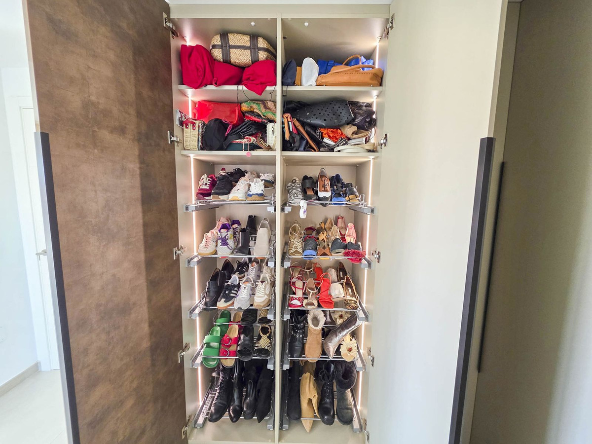 Le salon-salle à manger communique avec une cuisine ouverte entièrement rénovée récemment, équipée d'électroménagers Neff haut de gamme, lui conférant un style moderne, fonctionnel et élégant. Parmi les autres améliorations, on compte des placards intégrés avec éclairage et une terrasse vitrée, permettant de profiter pleinement de l'espace extérieur toute l'année.