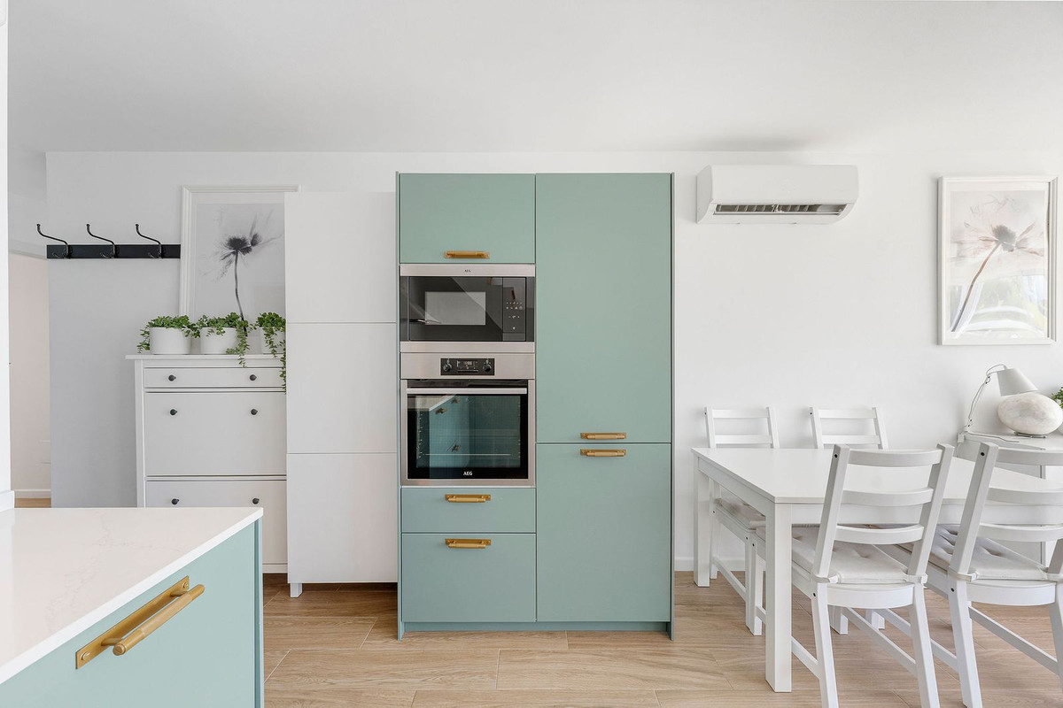Cette élégante propriété allie parfaitement confort moderne et charme méditerranéen. La cuisine, élégante et entièrement équipée, allie fonctionnalité et style. Le salon et la salle à manger ouverts et baignés de lumière naturelle vous mènent à l'étage sur une spacieuse terrasse privée offrant une vue imprenable sur la mer, les montagnes, le golf et la verdure environnante. Cette terrasse offre un espace de vie extérieur idéal pour bronzer, dîner en plein air ou simplement profiter du calme du lieu.