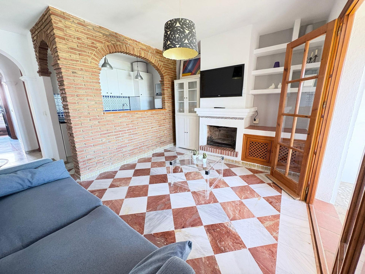 La propriété comprend une chambre spacieuse avec placards intégrés, une salle de bain complète ornée de carrelage andalou traditionnel et un agencement pensé pour optimiser chaque mètre carré. Le salon lumineux et accueillant, doté d'une cheminée, apporte chaleur et caractère, idéal pour des soirées conviviales. La cuisine ouverte, entièrement équipée, s'intègre harmonieusement à l'espace de vie, créant une atmosphère fonctionnelle et moderne tout en conservant une touche classique.