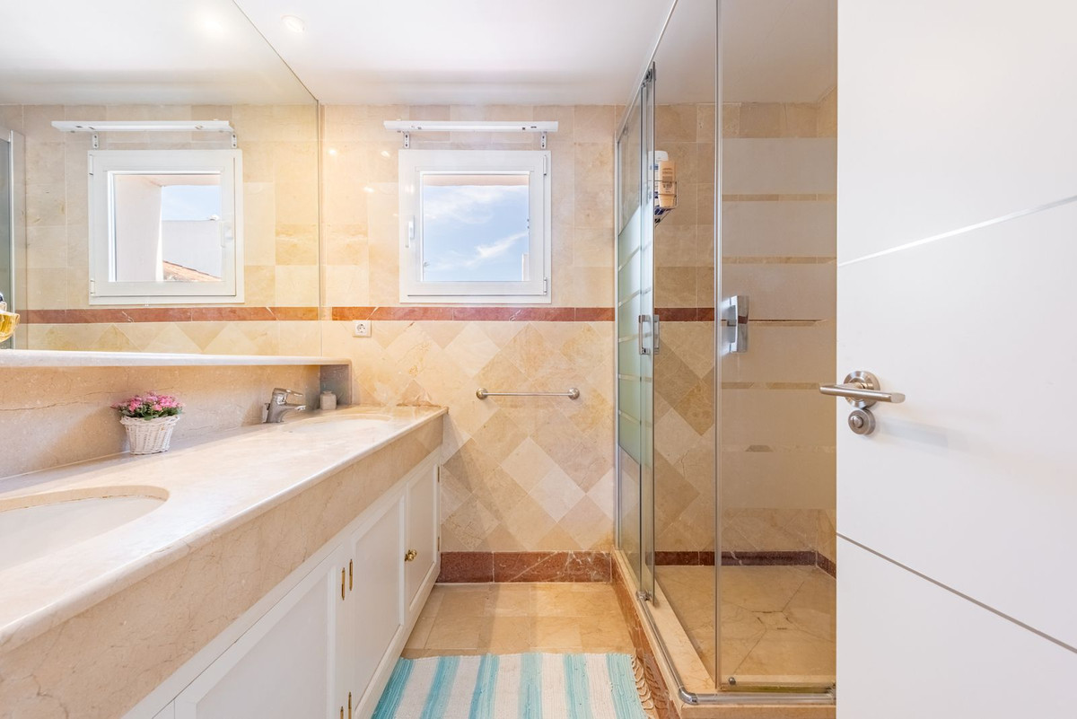 Ce superbe penthouse de 3 chambres et 3 salles de bain allie parfaitement luxe, confort et tranquillité. Situé à seulement 150 mètres de la plage et à deux pas du quartier animé de Puerto Banús, il offre un accès facile aux plus belles attractions côtières tout en bénéficiant d'un environnement paisible, sécurisé et sécurisé. La propriété est située dans un complexe privé avec sécurité 24h/24 et 7j/7, garantissant une tranquillité d'esprit absolue.
