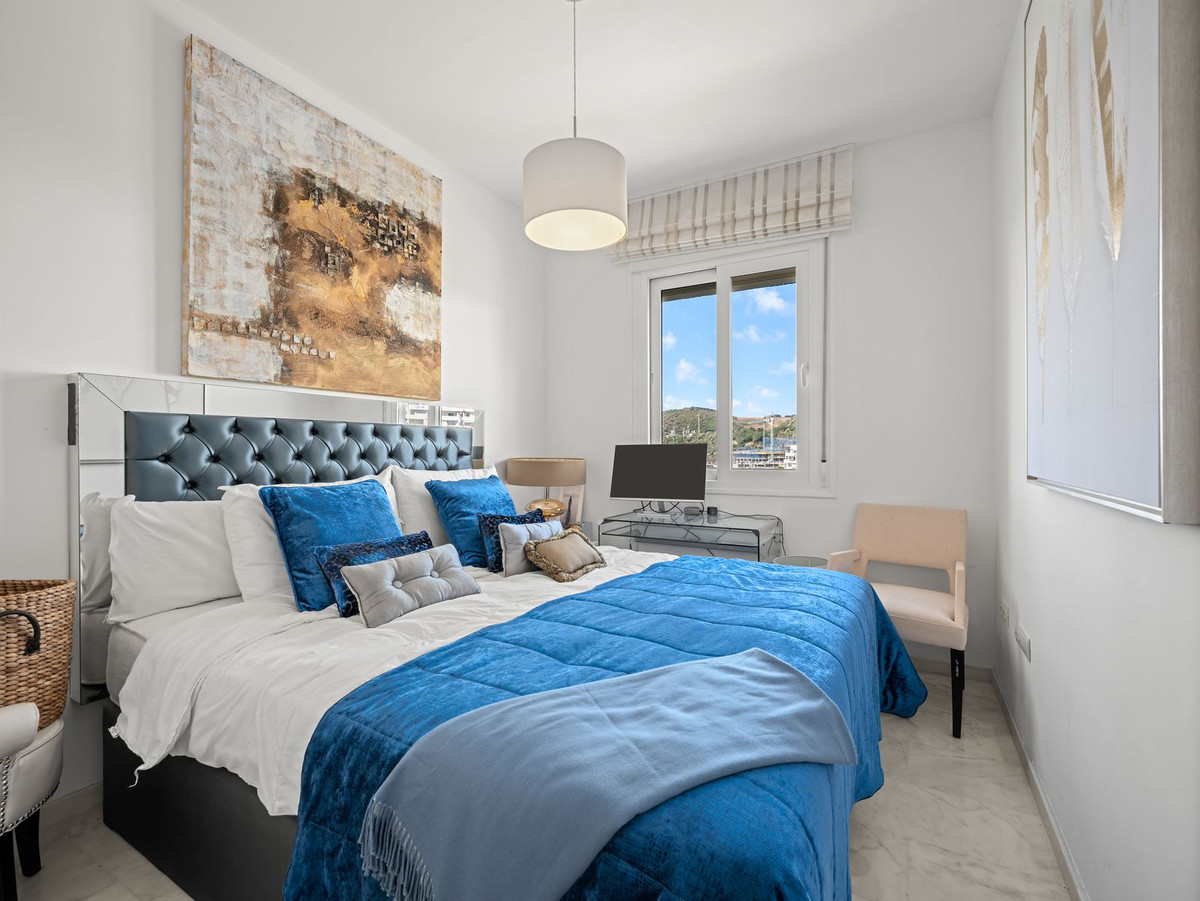 The living-dining room stands out for its spaciousness and luminosity, with direct access to a pleasant private terrace from where you can enjoy impressive panoramic views of the golf course and the sea. The kitchen is fully equipped with quality appliances, ideal for those who value both design and functionality.