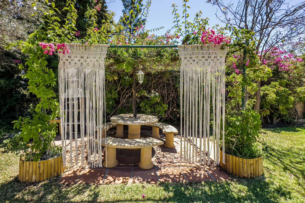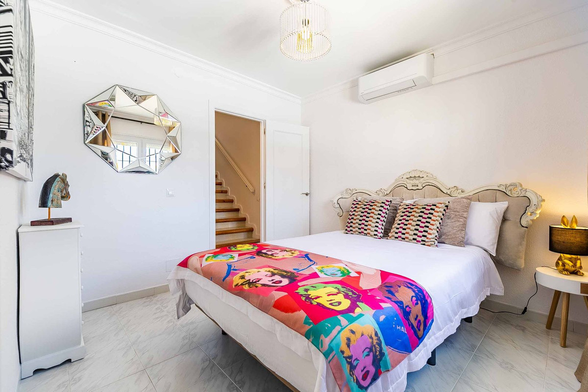 Nous sommes heureux de vous présenter cette magnifique villa individuelle de 4 chambres et 3 salles de bain, de style andalou classique. Construite en 1988 et récemment rénovée avec des matériaux de haute qualité, elle bénéficie d'un jardin arboré avec des espaces salon et repas couverts et ouverts, ainsi que d'un espace barbecue dédié, idéal pour profiter du climat agréable et de la vue sur la mer et les montagnes. Son emplacement est idéal, à 5 minutes en voiture des plages et du village de Benalmádena. La villa dispose d'un parking pour au moins 4 voitures, d'une grande piscine privée, d'un solarium avec vue magnifique, de deux espaces salon, d'un bar, d'un espace barbecue, de remises et d'un trampoline. À l'étage, par le hall, on accède à un vaste salon avec cheminée donnant accès à la terrasse couverte, à la cuisine, à la salle à manger et à des toilettes invités. Au rez-de-chaussée, on trouve 4 chambres doubles et 3 salles de bain, dont 2 attenantes, et 2 avec accès à la piscine et aux jardins.