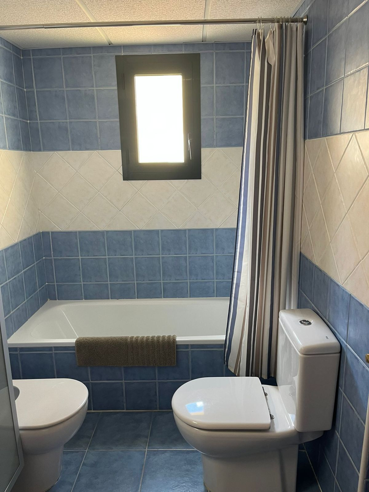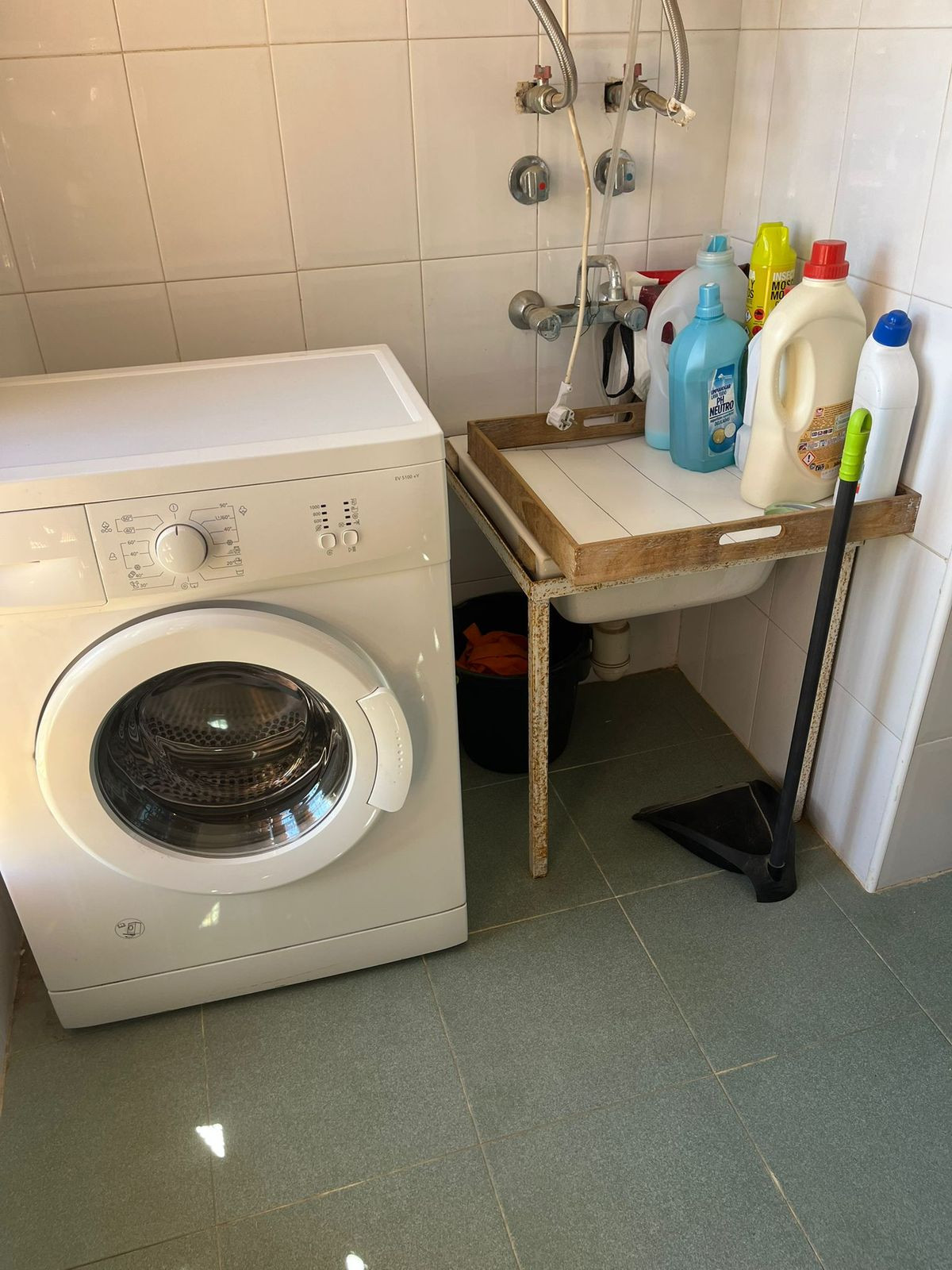 La propriété comprend trois chambres et deux salles de bains en excellent état. Le salon-salle à manger est lumineux, spacieux et accueillant. La cuisine indépendante est entièrement équipée et comprend une buanderie séparée. Une grande terrasse avec vue dégagée offre un espace idéal pour se détendre ou profiter du plein air. La propriété dispose également d'une place de parking privée et d'un débarras.