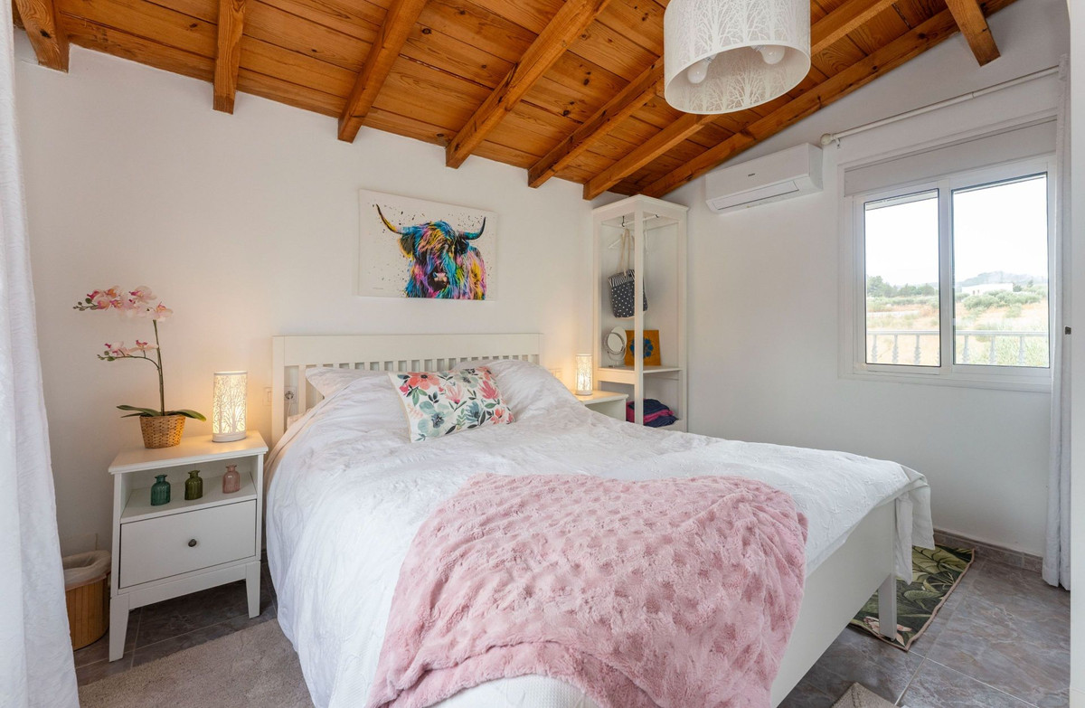 Le premier étage, accessible par un escalier extérieur, comprend deux autres chambres doubles et une seconde salle de bain, toutes deux agrémentées de magnifiques plafonds en bois. Cet agencement est idéal pour accueillir des enfants adultes, une famille nombreuse ou même des invités, offrant flexibilité et indépendance.