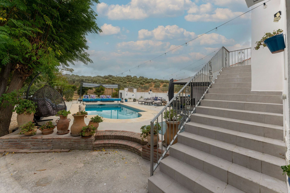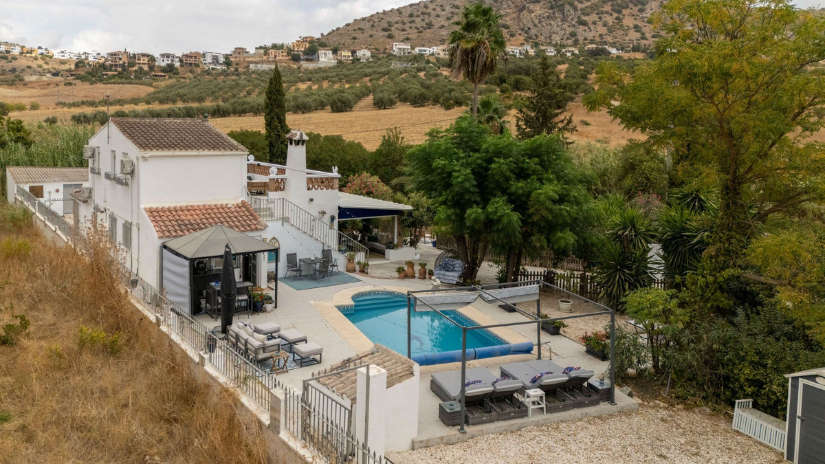 La propriété est située sur un terrain plat d'un peu plus de 4 400 m², dont une partie entoure la maison, tandis qu'une autre parcelle, plus petite, se trouve de l'autre côté du chemin. Cet espace indépendant est planté d'environ 40 oliviers et 40 orangers, apportant une touche andalouse authentique. La parcelle principale est entièrement clôturée, garantissant intimité et sécurité.