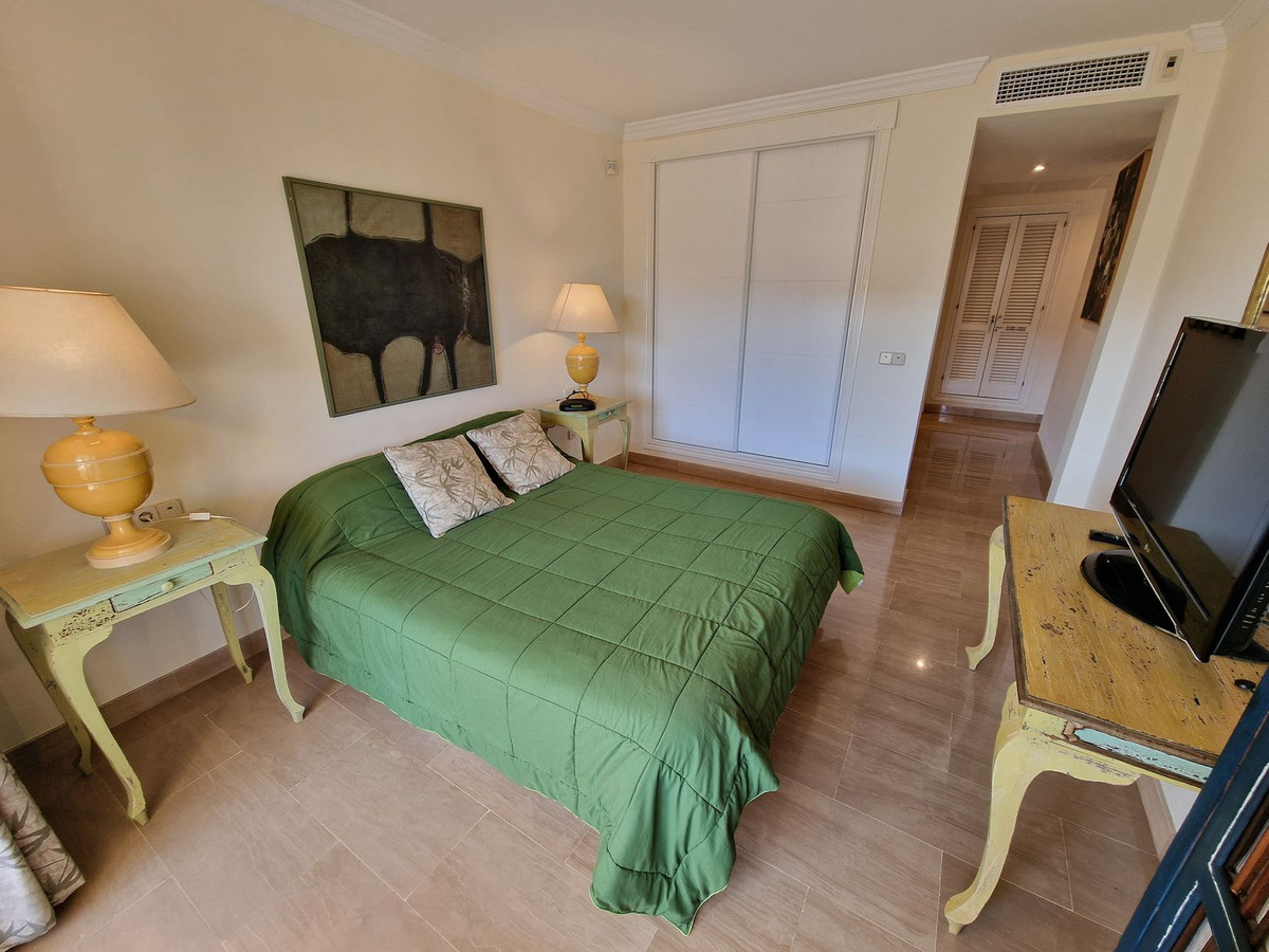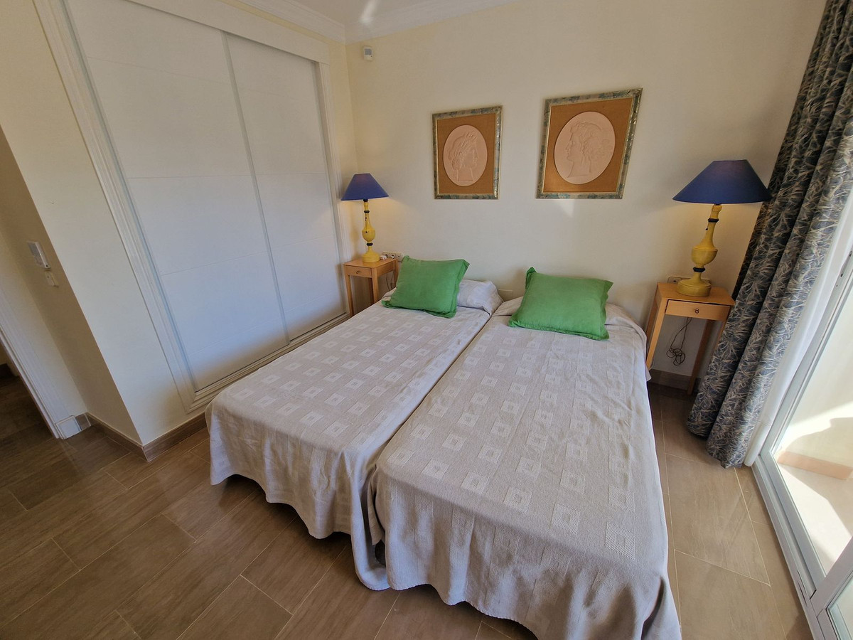 L'appartement a une surface habitable spacieuse de 137m2 plus 30m2 de terrasse, il se compose d'un hall d'entrée, cuisine entièrement équipée, 2 chambres, 2 salles de bains (salle de bain principale avec douche et baignoire, une salle de bain avec douche), salon salle à manger et une grande terrasse donnant sur les jardins et la piscine de l'urbanisation, orientée sud. L'urbanisation propose également des courts de paddle-tennis et des caméras de sécurité. Vendu avec 2 places de garage et 3 débarras.