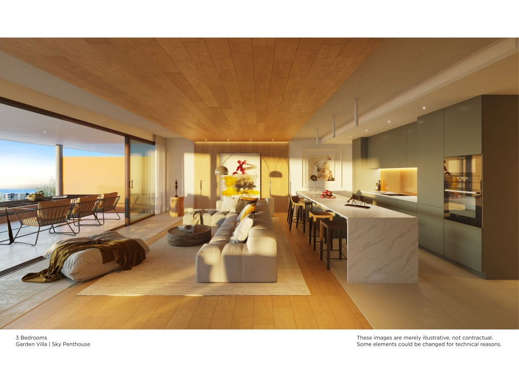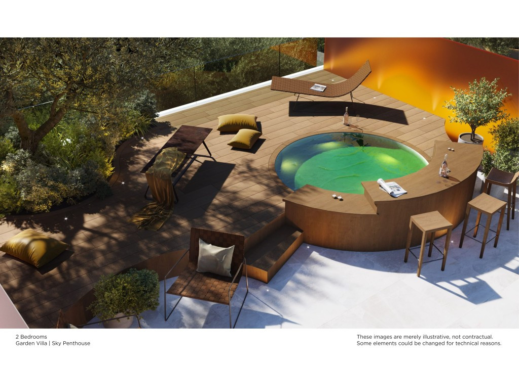 Sky Villas : Penthouses de 2 et 3 chambres au 4ème étage, également avec solarium privé à partir de 150 m2 minimum + piscine privée, pergola, transats relax etc.