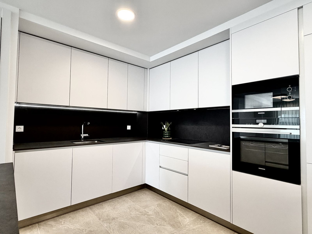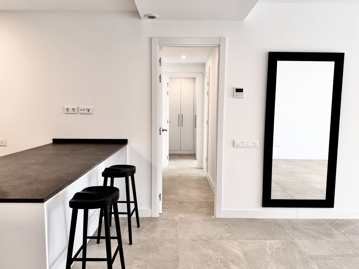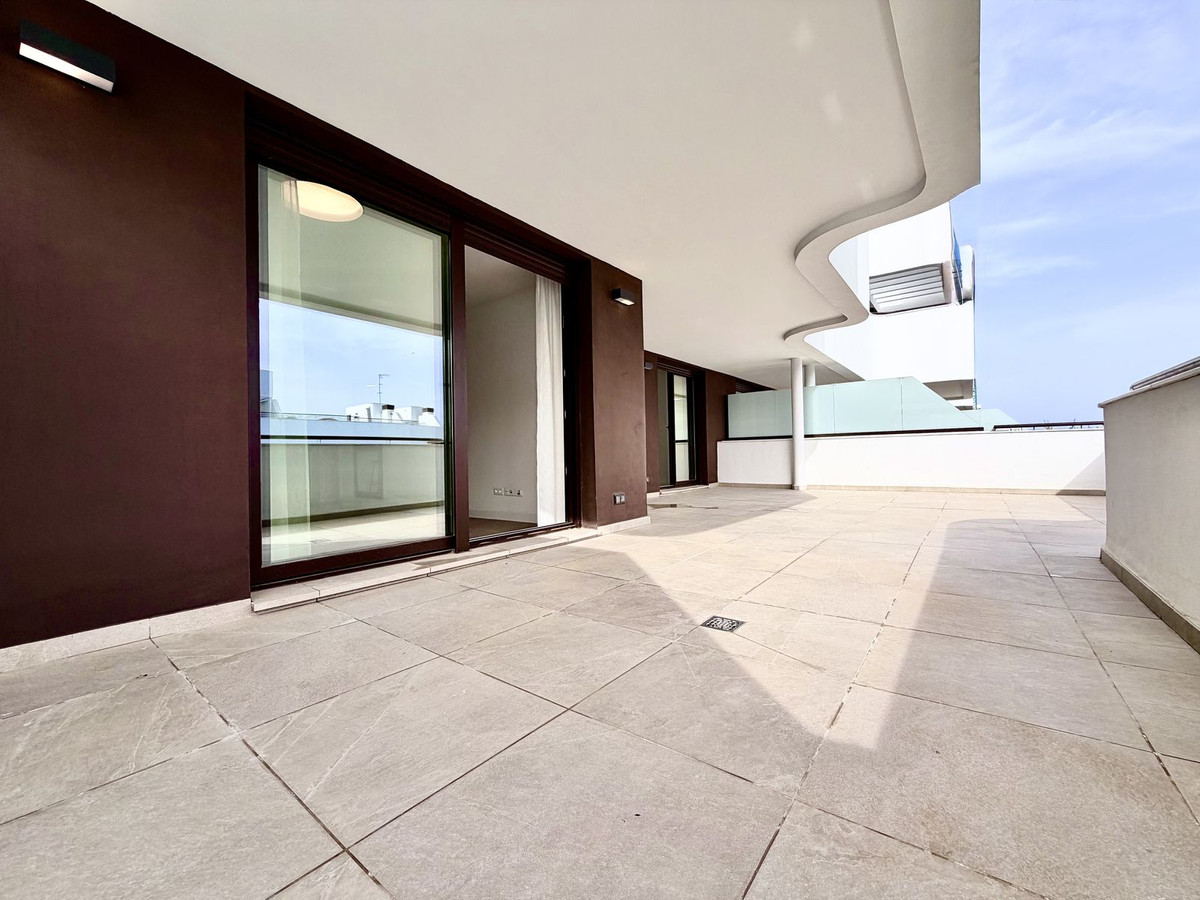 The open-plan living area with a modern kitchen opens onto a spacious private terrace — perfect for enjoying the Mediterranean lifestyle.