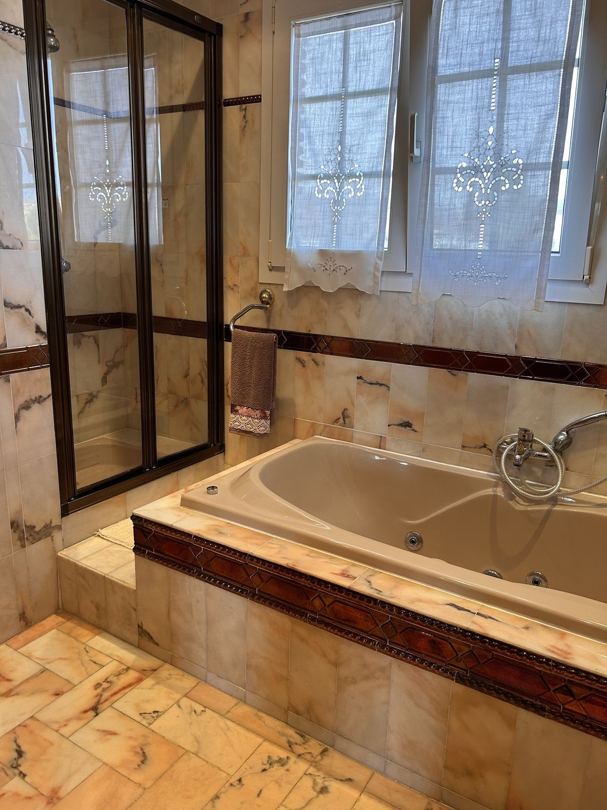 Four bedrooms and two bathrooms. The master suite features a walk-in wardrobe and an en-suite bathroom with both hydromassage bathtub and shower. Two double bedrooms with fitted wardrobes and a comfortable guest room complete this level.