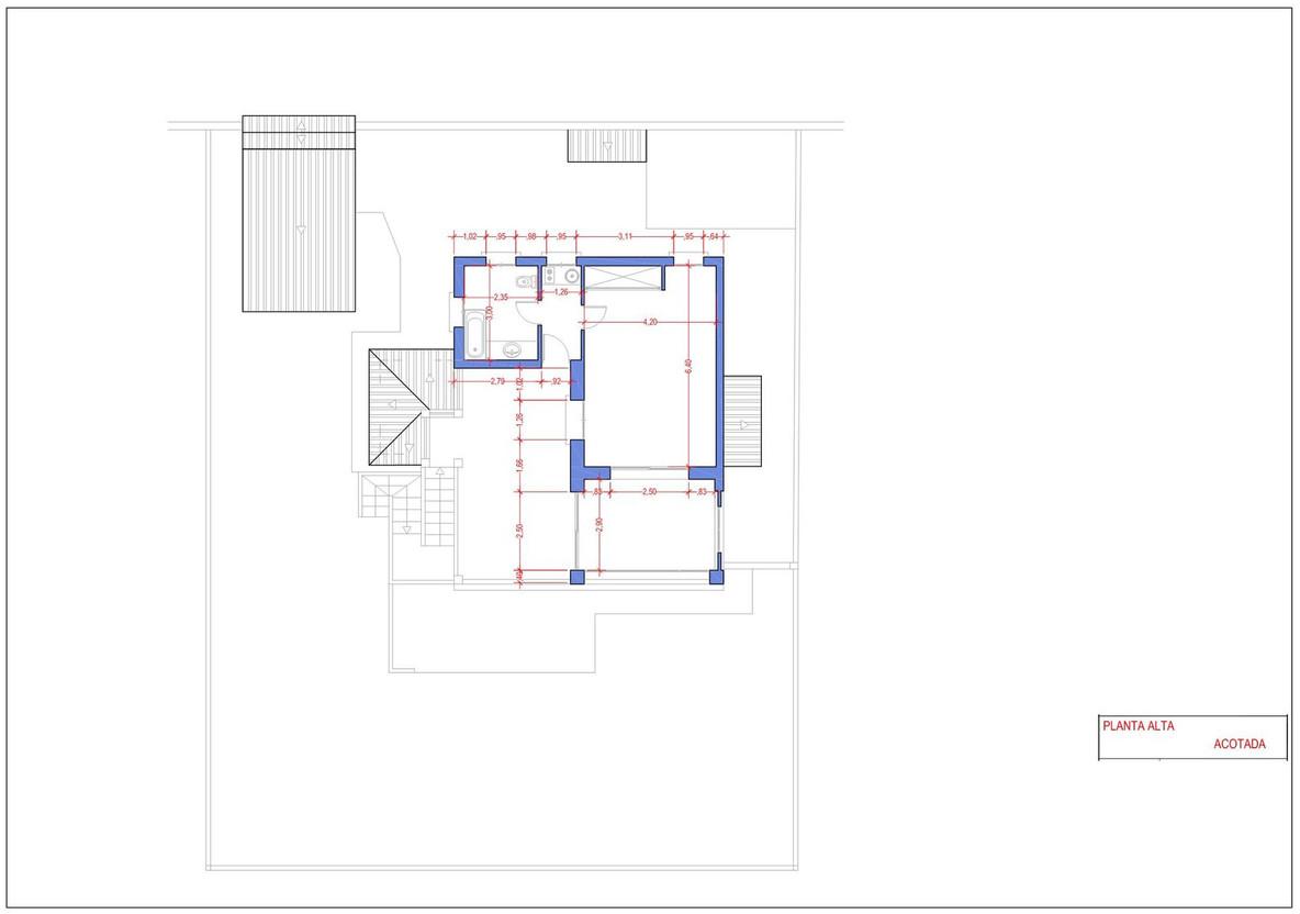 •Chambre principale à l'étage supérieur avec accès à une terrasse couverte fermée par une vitre, transformée en salon vue mer