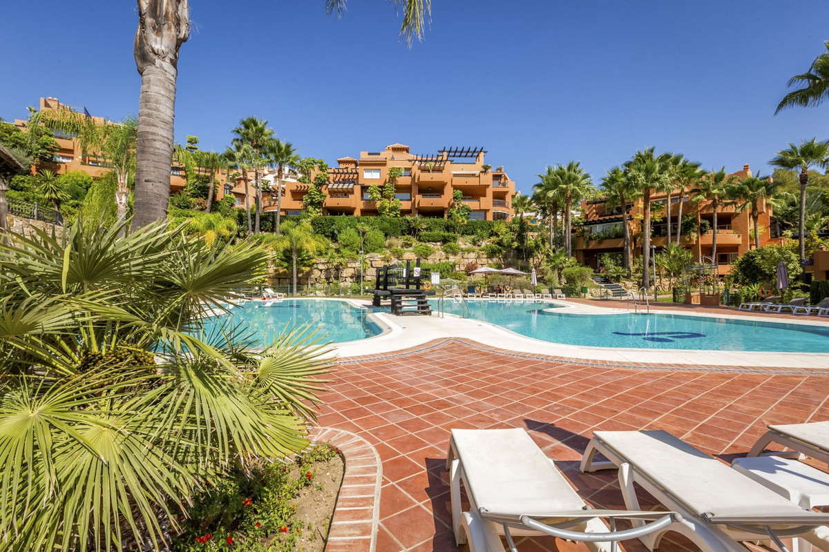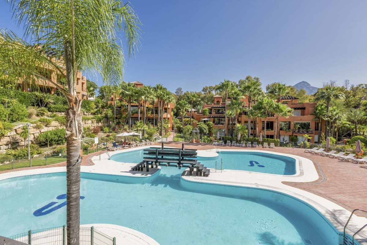 Set in one of Nueva Andalucia’s green communities with tropical gardens, a lake, and two pools, this southeast-facing ground-floor apartment is made for easy indoor-outdoor living.