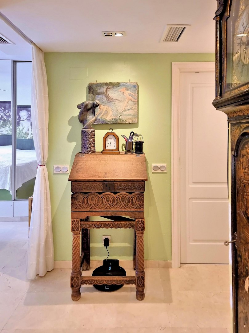 Spacieux et lumineux appartement d'angle exposé plein sud à Calahonda, alliant espace, confort et vues spectaculaires sur la mer et la montagne. Initialement composé de trois chambres, il a été transformé en deux, intégrant une chambre au séjour pour créer un espace plus vaste et modulable. Il comprend deux salles de bains, un dressing, une buanderie et une cuisine partiellement équipée. La propriété dispose d'une terrasse couverte, idéale pour profiter du beau temps et de la vue sur la mer, ainsi que d'un garage et d'un cellier en sous-sol. Son emplacement en angle garantit une plus grande intimité et une luminosité optimale. Parmi ses atouts : climatisation réversible, sols en marbre, double vitrage, placards intégrés et accès pour personnes à mobilité réduite. La résidence offre deux piscines communes, des jardins bien entretenus, un interphone, un accès sécurisé et un service de maintenance irréprochable. Situé dans une rue calme à sens unique, il se trouve à quelques pas des restaurants et à 5 minutes en voiture des bus, supermarchés, golfs, courts de tennis et de la plage. Une opportunité unique de vivre dans l'un des quartiers les plus prisés de la Costa del Sol, idéal comme résidence principale ou investissement.