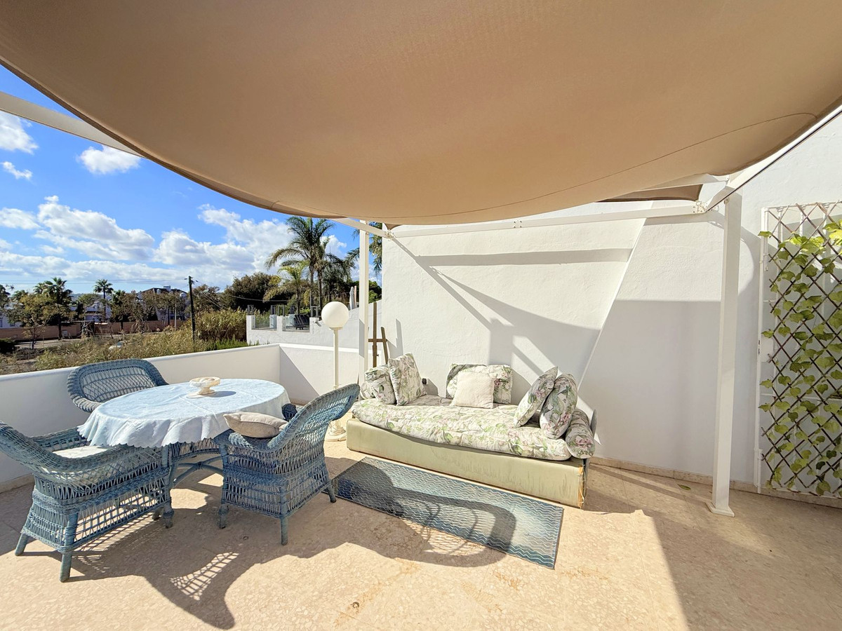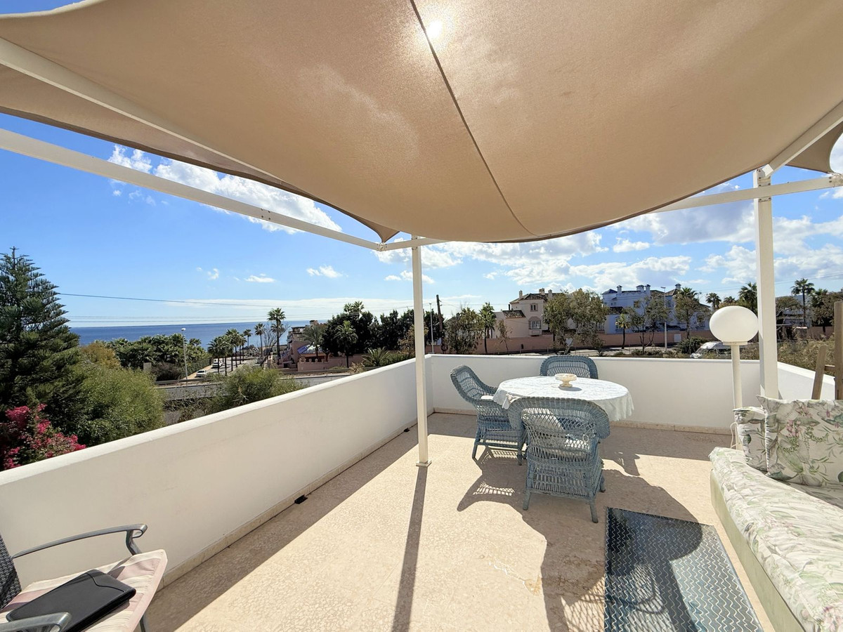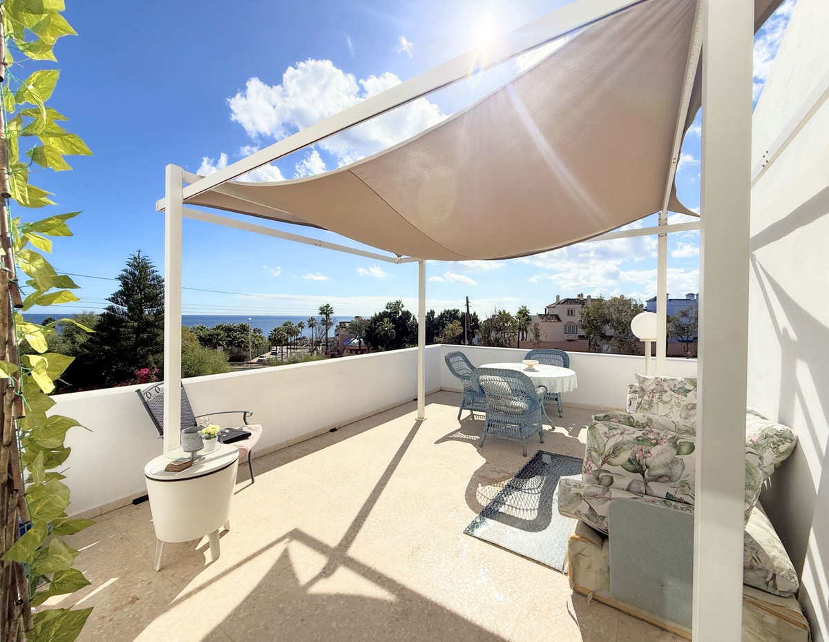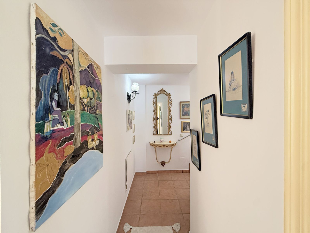 La propriété est répartie sur deux niveaux. Dès l'entrée, un charmant patio vous accueille et mène au rez-de-chaussée, qui comprend un salon lumineux, une cuisine indépendante et une terrasse offrant une agréable vue sur la mer – idéale pour se détendre et profiter du calme environnant.