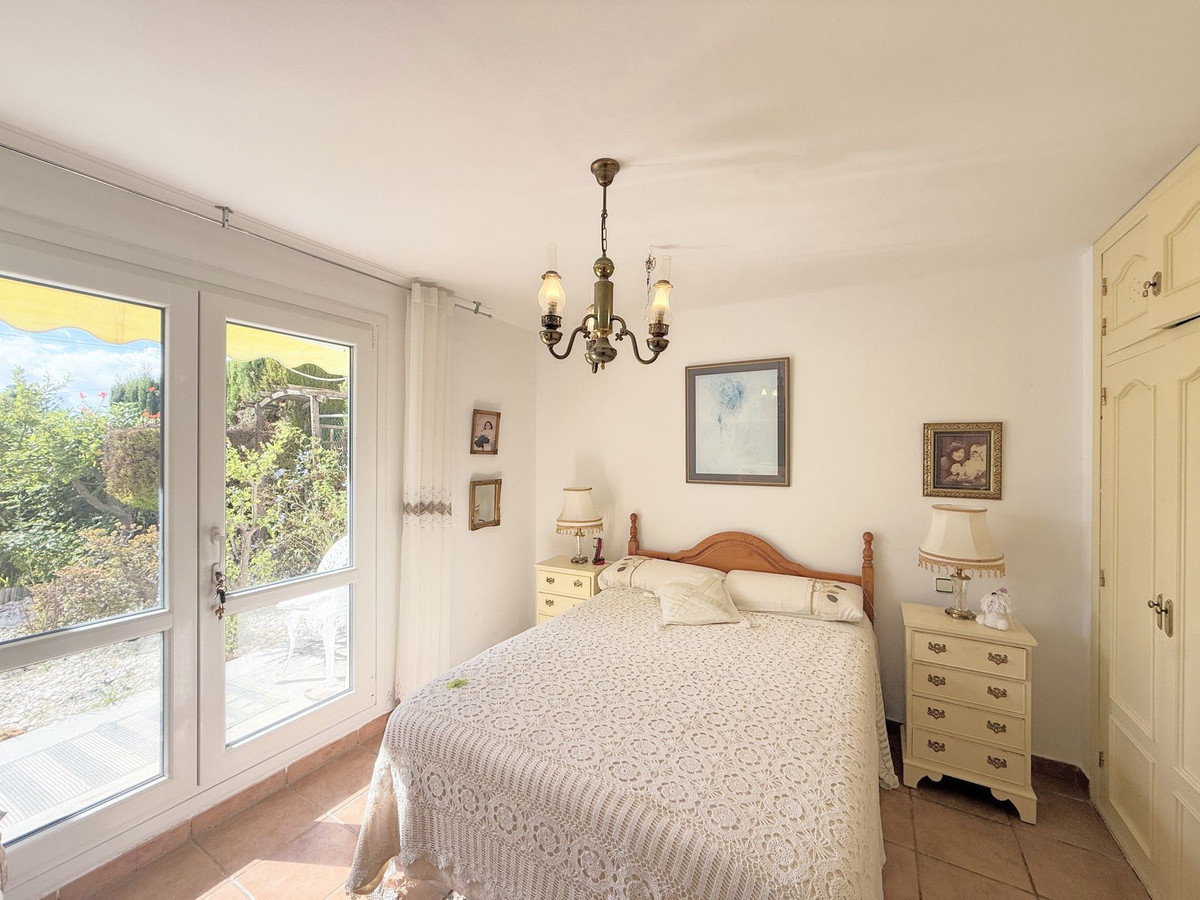 Au niveau inférieur se trouvent deux chambres spacieuses et une salle de bains complète. De là, vous accédez à un charmant jardin privé d'environ 90 m², agrémenté d'arbres matures et d'une végétation soignée qui offrent ombre, fraîcheur et une merveilleuse sensation d'intimité et de tranquillité.