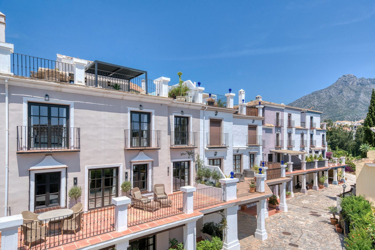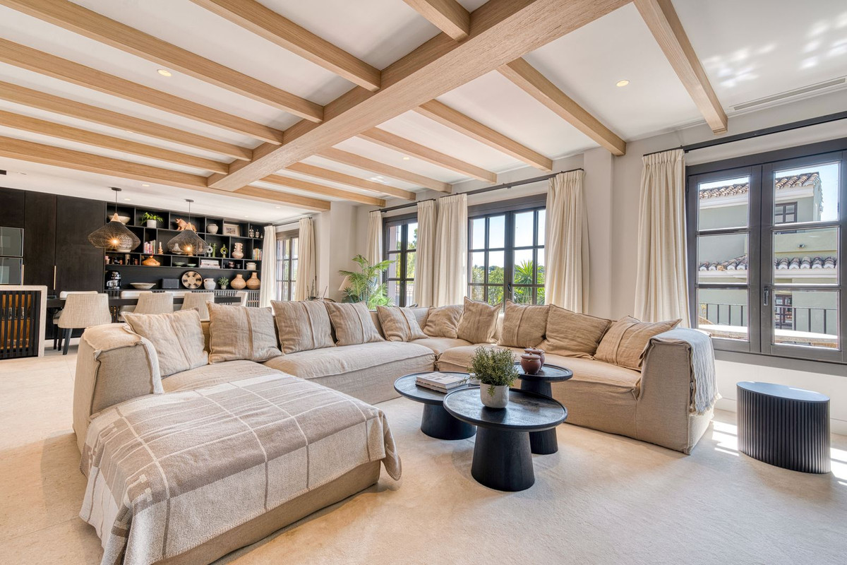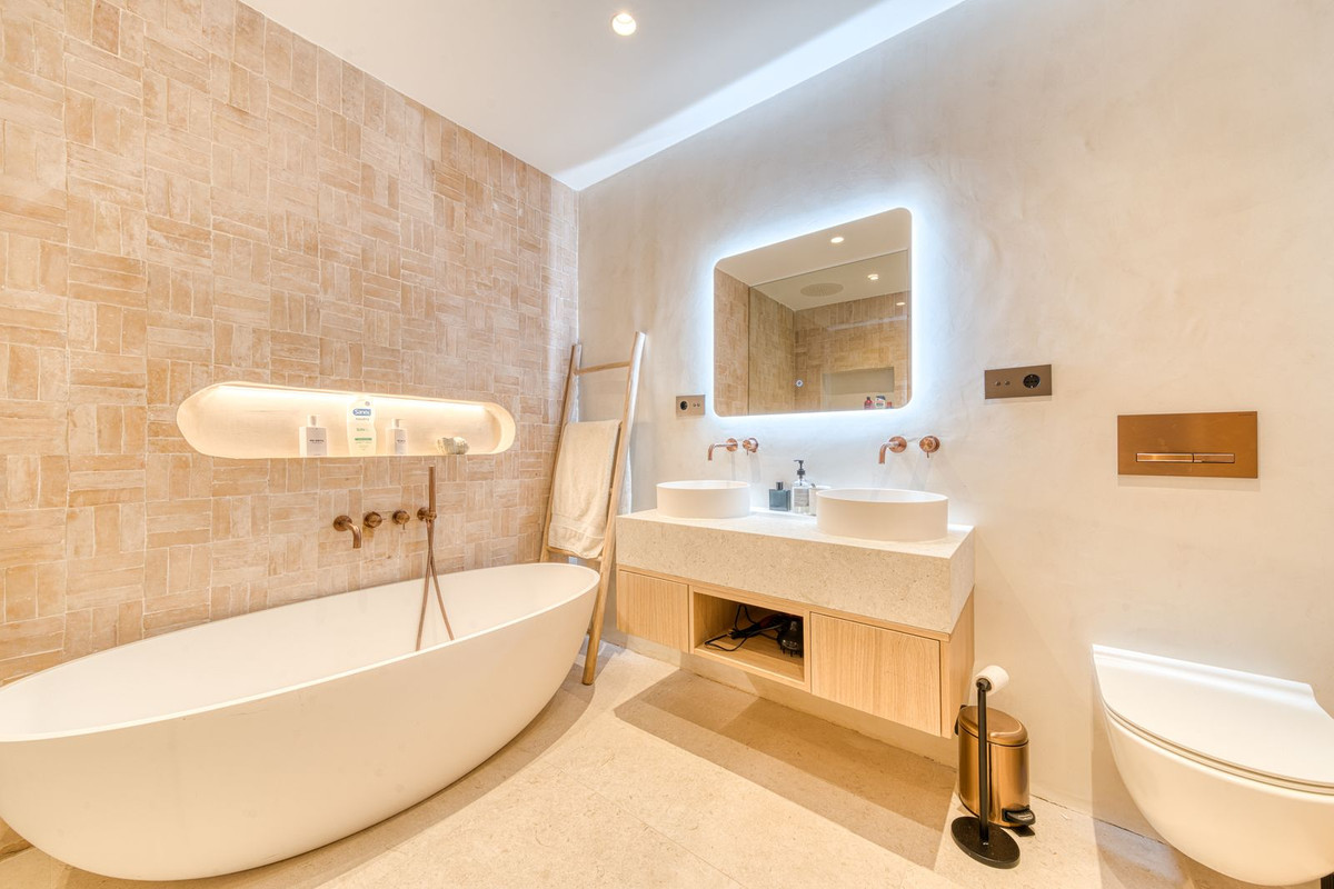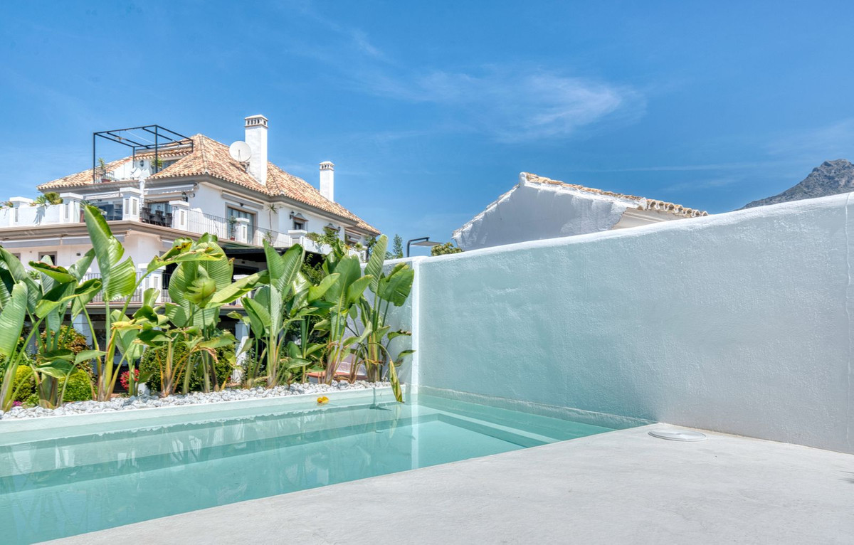 La terrasse sur le toit est tout simplement époustouflante, offrant une vue panoramique imprenable qui s'étend de La Concha aux toits du Puente Romano, en passant par la mer Méditerranée, et même Gibraltar et l'Afrique du Nord par temps clair. Conçue pour être habitée toute l'année, elle comprend un bassin chauffé, un espace barbecue et repas, ainsi qu'un salon ombragé pour se détendre, incarnant à merveille le style de vie marbellien, entre intérieur et extérieur. La propriété est proposée non meublée, mais le vendeur acceptera une offre incluant le mobilier dans la vente.