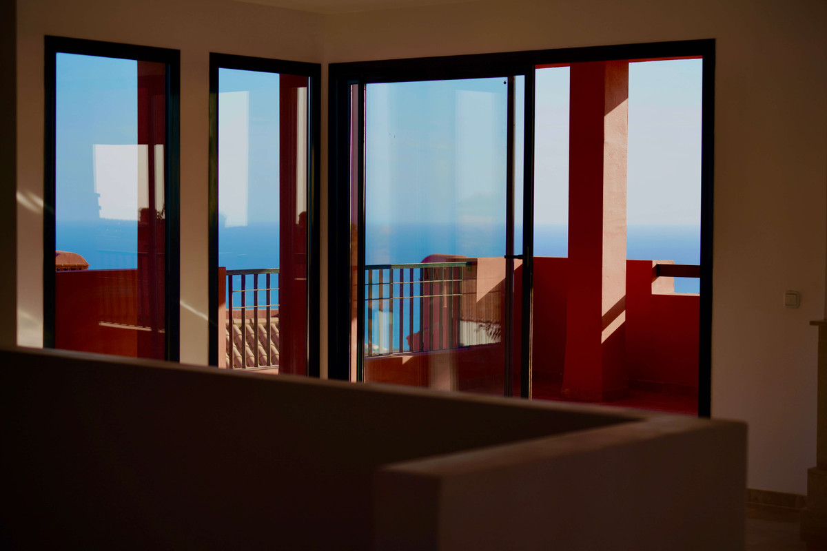 Le cœur de la maison est son vaste séjour-salle à manger, agrémenté d'une cheminée et d'une cuisine ouverte conçue pour la convivialité. La lumière naturelle inonde chaque recoin, se fondant harmonieusement avec les vues spectaculaires sur la mer, Gibraltar et l'Afrique.