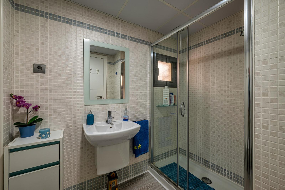 Ce logement est situé au premier étage d'une résidence calme, garantissant une tranquillité absolue. Il est facilement accessible par ascenseur. Les résidents peuvent également profiter de deux piscines communes, dont une avec une vue spectaculaire, ainsi que de jardins bien entretenus pour de paisibles promenades. Une aire de jeux est également à disposition des enfants.