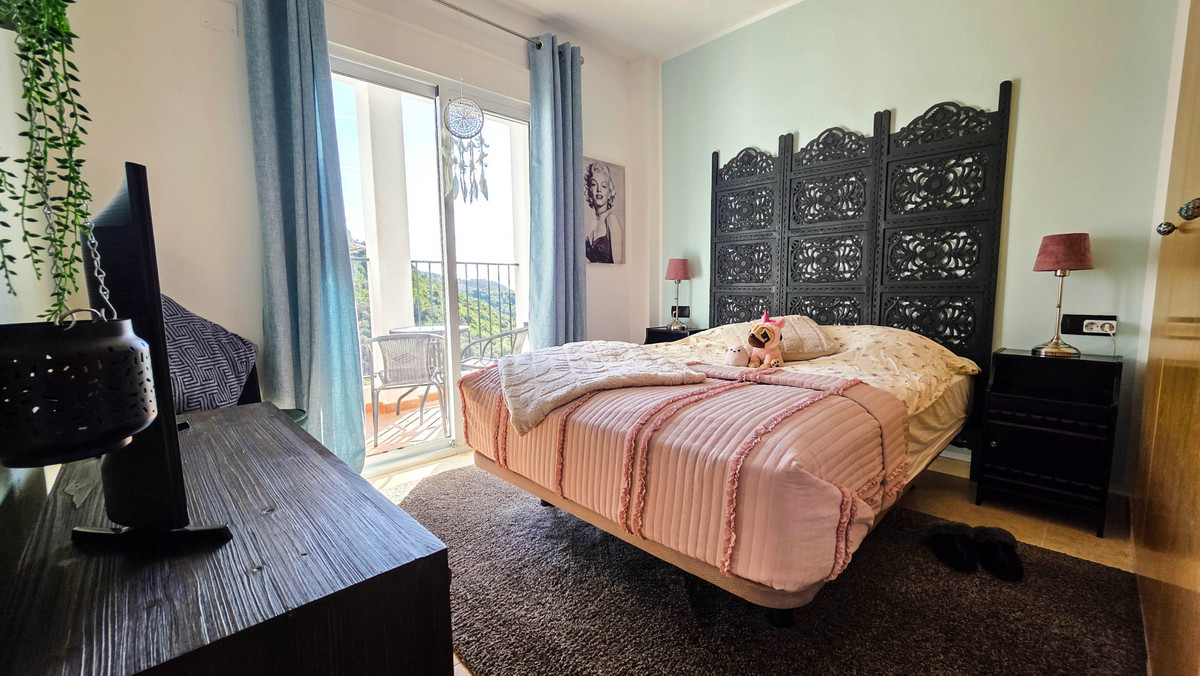 Cette propriété comprend trois chambres, deux salles de bains et des toilettes invités, judicieusement réparties dans des espaces de vie lumineux et aérés. Plusieurs balcons offrent des points de vue exceptionnels, tandis que le solarium privé avec jacuzzi invite à la détente et à profiter du calme de ce cadre pittoresque.
