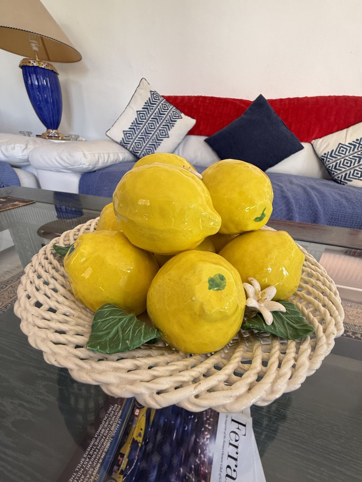 À l'extérieur, vous découvrirez de jolis jardins bien entretenus avec des citronniers matures ; à l'arrière de la propriété se trouvent la piscine et le solarium, très privés, où vous pourrez vous détendre en toute intimité.