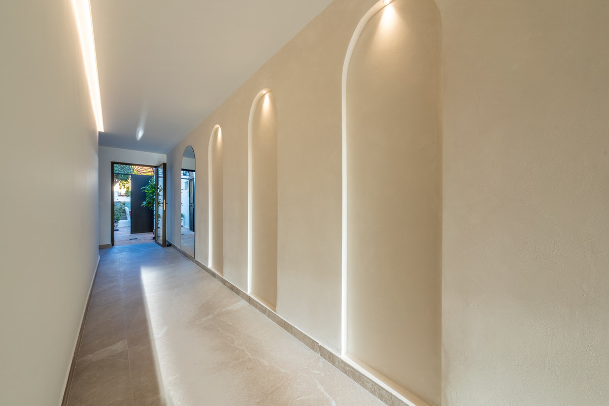 Découvrez une sophistication sans effort dans cette maison de ville de 4 chambres récemment rénovée, nichée au sein de la communauté fermée et exclusive de La Rinconada, au cœur de la Vallée du Golf de Marbella.