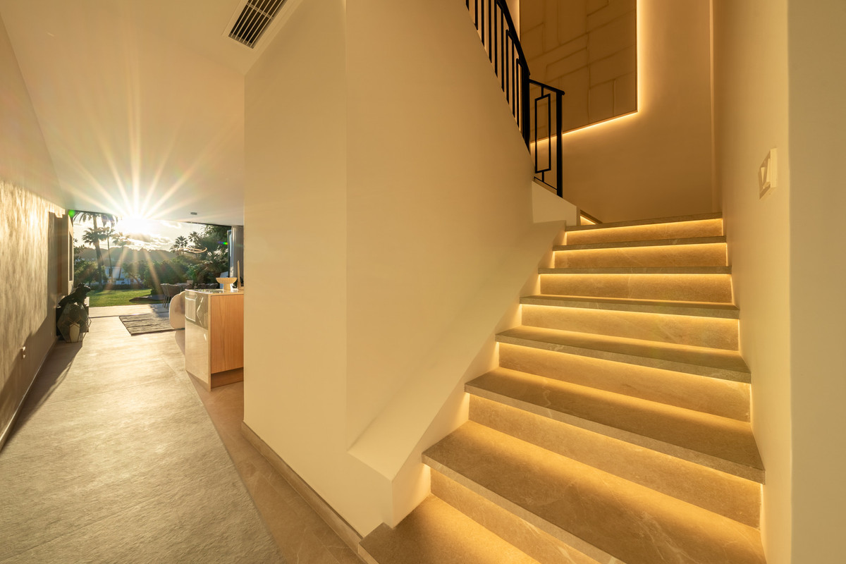 Nichée au cœur de jardins tropicaux luxuriants et agrémentée d'une magnifique piscine commune, cette maison offre un parfait mélange de tranquillité et de commodités, à quelques minutes de terrains de golf de renommée mondiale, de boutiques chics et de la vie animée de Puerto Banús.