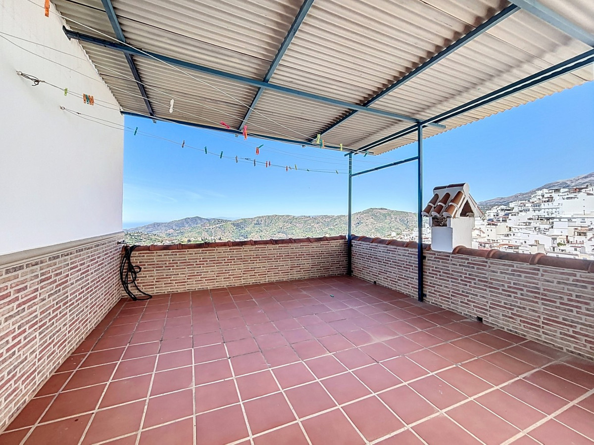Ce chalet baigné de lumière, aux abords de Cómpeta, allie espace, tranquillité et la douceur de vivre andalouse. Réparti sur trois niveaux, il offre un cadre de vie idéal, que ce soit pour y vivre à l'année ou y passer des vacances ensoleillées. À l'intérieur, vous découvrirez trois chambres confortables, une salle de bains, un salon accueillant, une salle à manger séparée et une cuisine fonctionnelle, le tout lumineux et spacieux, conçu pour un confort optimal. La vie se prolonge à l'extérieur : plusieurs terrasses et balcons offrent des espaces ensoleillés et ombragés tout au long de la journée, parfaits pour savourer un café le matin, lire un bon livre ou passer d'agréables soirées entre amis. L'espace piscine avec barbecue intégré est idéal pour profiter des longues journées d'été, tandis que la vue s'étend sur le village, les collines environnantes et jusqu'à la mer au loin. Un garage, un cellier et une buanderie séparée complètent les atouts pratiques de cette maison. Et surtout : les commerces, cafés et restaurants de Cómpeta sont accessibles à pied. Une maison de caractère pour ceux qui souhaitent vivre pleinement l'art de vivre andalou. Nous sommes ravis de pouvoir vous présenter prochainement cette propriété de rêve, en personne ou par visite virtuelle. Car ce monde est unique, à l'image de notre Axarquía. En Andalousie. Sur la Costa del Sol. Ici, sous le soleil…