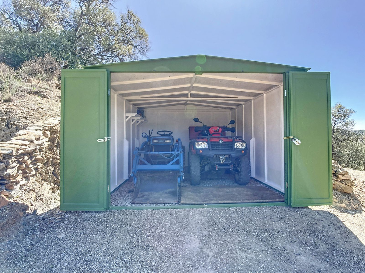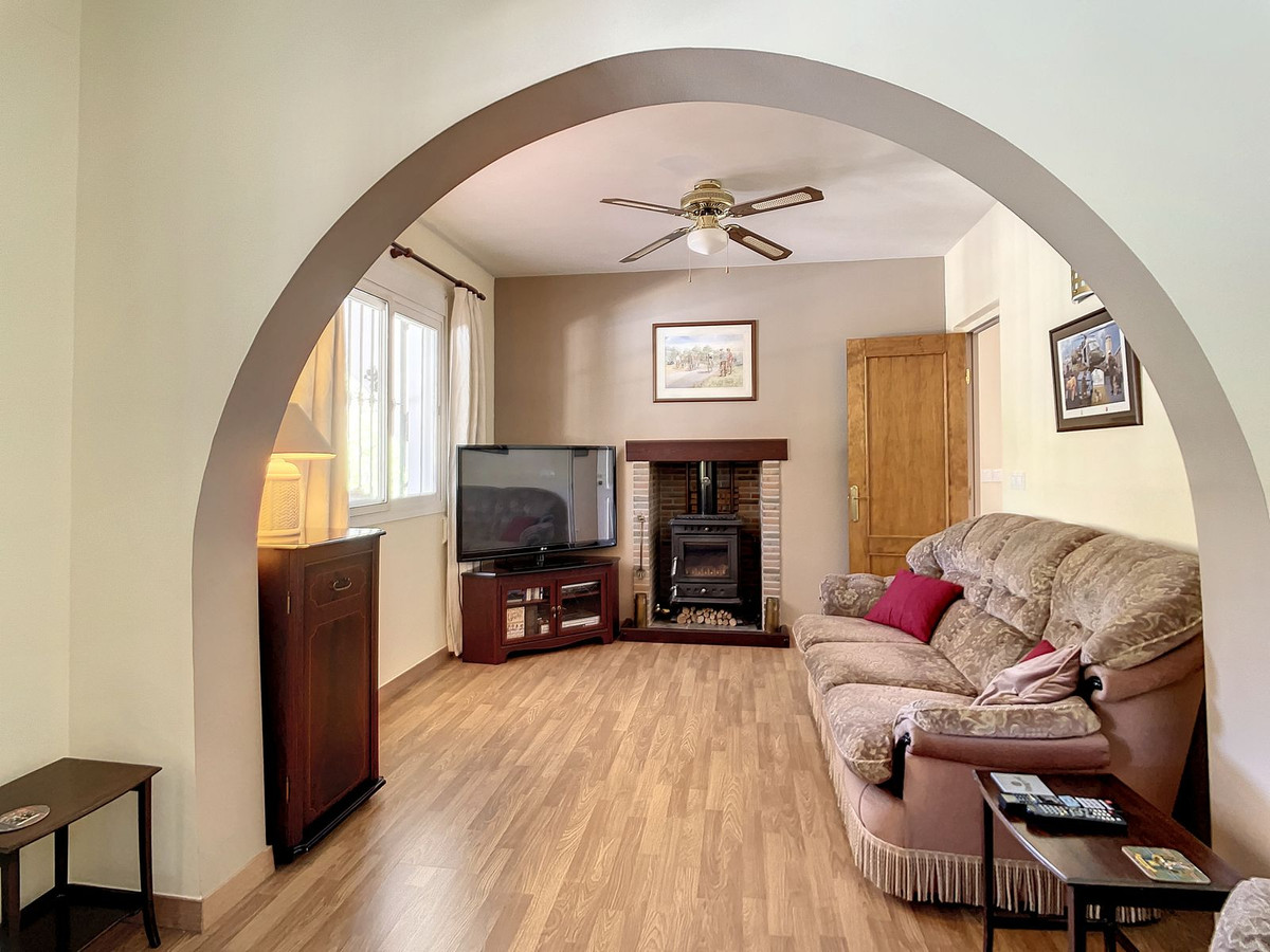À l'extérieur, vous trouverez une piscine d'eau salée de 10 x 4 mètres avec une terrasse carrelée, une véranda sur toute la longueur de la maison, un garage, une salle de sport ou un espace de rangement séparé, un hangar pour le matériel agricole et de nombreux espaces de rangement supplémentaires. Le terrain environnant est magnifiquement entretenu et planté d'amandiers, d'oliviers et de caroubiers, ainsi que d'un généreux verger où poussent figues, oranges, citrons, mandarines, cerisiers, pruniers et avocatiers.