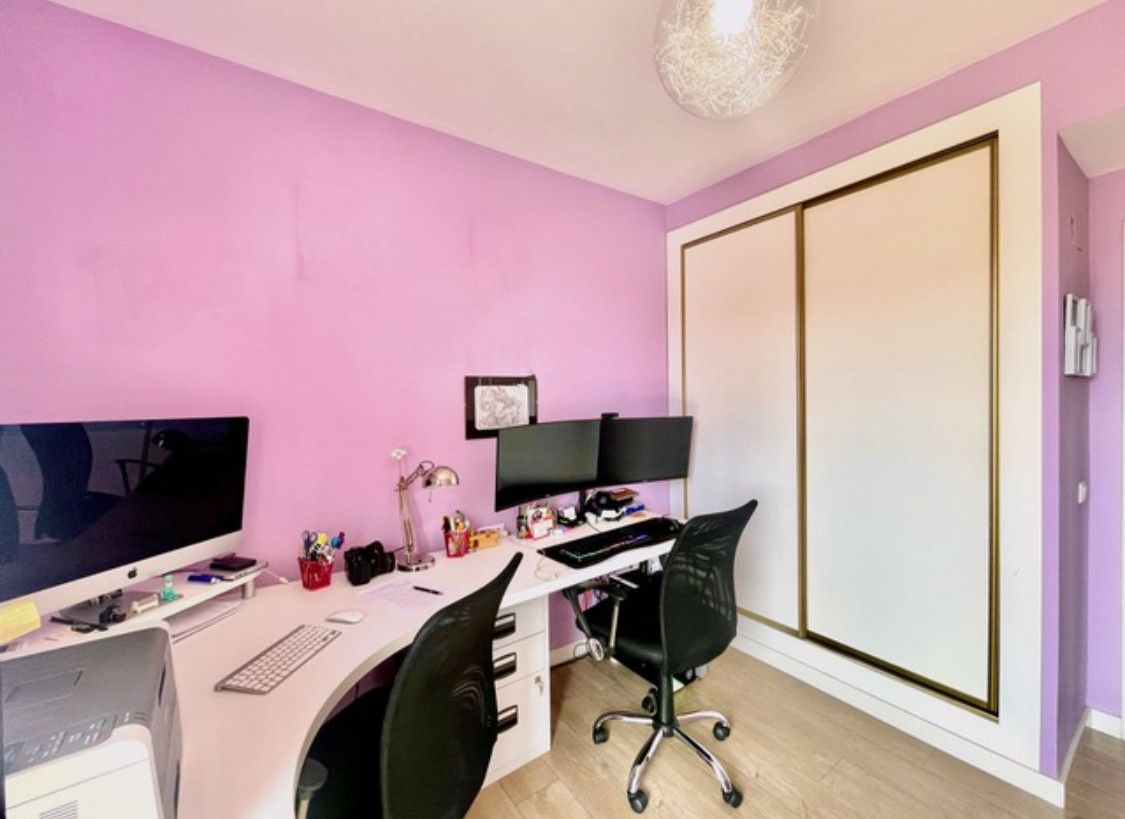 L'espace extérieur est tout aussi agréable, avec une terrasse privée de 14 m², un balcon et un patio au rez-de-chaussée, offrant tous une vue imprenable sur la campagne et le golf. Les résidents ont également accès à un court de tennis et de padel, idéal pour les loisirs. Les animaux de compagnie sont les bienvenus, ce qui ravira les amoureux des animaux, et un garage privé assure un stationnement sécurisé.