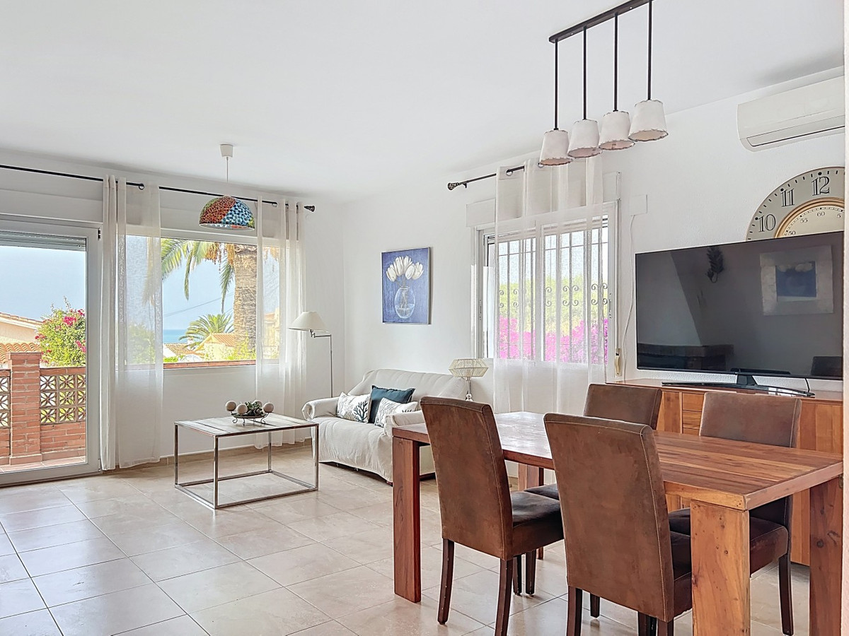 Cette charmante maison de deux étages à Caleta de Vélez offre 169,38 m² habitables et 220 m² construits, terrasses comprises, dans un emplacement privilégié avec vue sur la mer et piscine. Son design allie le charme méditerranéen au confort moderne, idéal pour profiter pleinement de la douceur de vivre de la Costa del Sol. Le rez-de-chaussée (87,21 m²) comprend un espace de vie lumineux et ouvert avec salle à manger, donnant directement sur l'extérieur grâce à de grandes baies vitrées et une porte-fenêtre. Ce niveau comprend également trois chambres, une salle de bain complète et des rangements intégrés, le tout dans des tons clairs et chaleureux qui mettent en valeur la lumière naturelle. L'étage (69,89 m²) poursuit cette harmonie et comprend deux autres chambres, une salle de bain supplémentaire, un salon cosy avec cheminée et un accès à une terrasse avec vue imprenable sur la mer, idéale pour se détendre ou recevoir. Le sol mêle parquet clair et carrelage, et la lumière naturelle inonde toute la maison. Des couleurs neutres et des touches artistiques raffinées confèrent à chaque pièce du caractère sans surcharger l'espace. Cette propriété polyvalente est idéale comme résidence principale ou secondaire, située dans l'un des quartiers les plus paisibles et prisés de la côte de Malaga. Nous sommes ravis de pouvoir vous présenter prochainement ce bien d'exception, en personne ou par visite virtuelle. Car ce monde est unique, à l'image de notre Axarquía. En Andalousie. Sur la Costa del Sol. Ici, la vie est belle et ensoleillée…