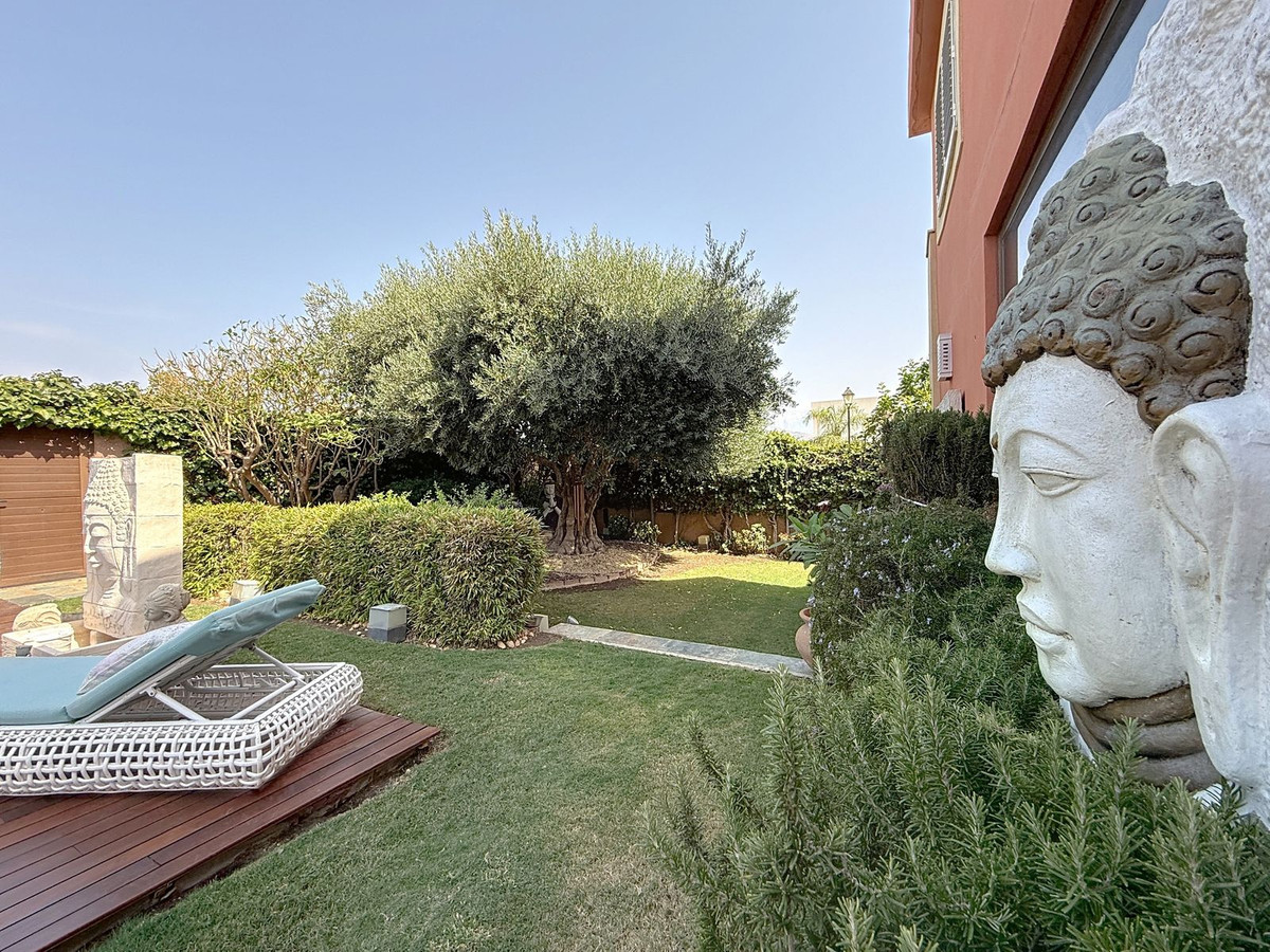 Dès que vous franchissez le portail privé, une sérénité absolue vous enveloppe. Les jardins forment un univers à part : un olivier centenaire veille sur la propriété, des statues de Bouddha invitent à la quiétude, des terrasses ombragées et des coins lounge intimes invitent à la détente. Au cœur de ce havre de paix se trouve une piscine de 6 x 4 m avec jacuzzi, nichée au cœur d'une végétation luxuriante et à l'ombre bienfaisante d'arbres matures – une oasis rare dans ce lieu privilégié.