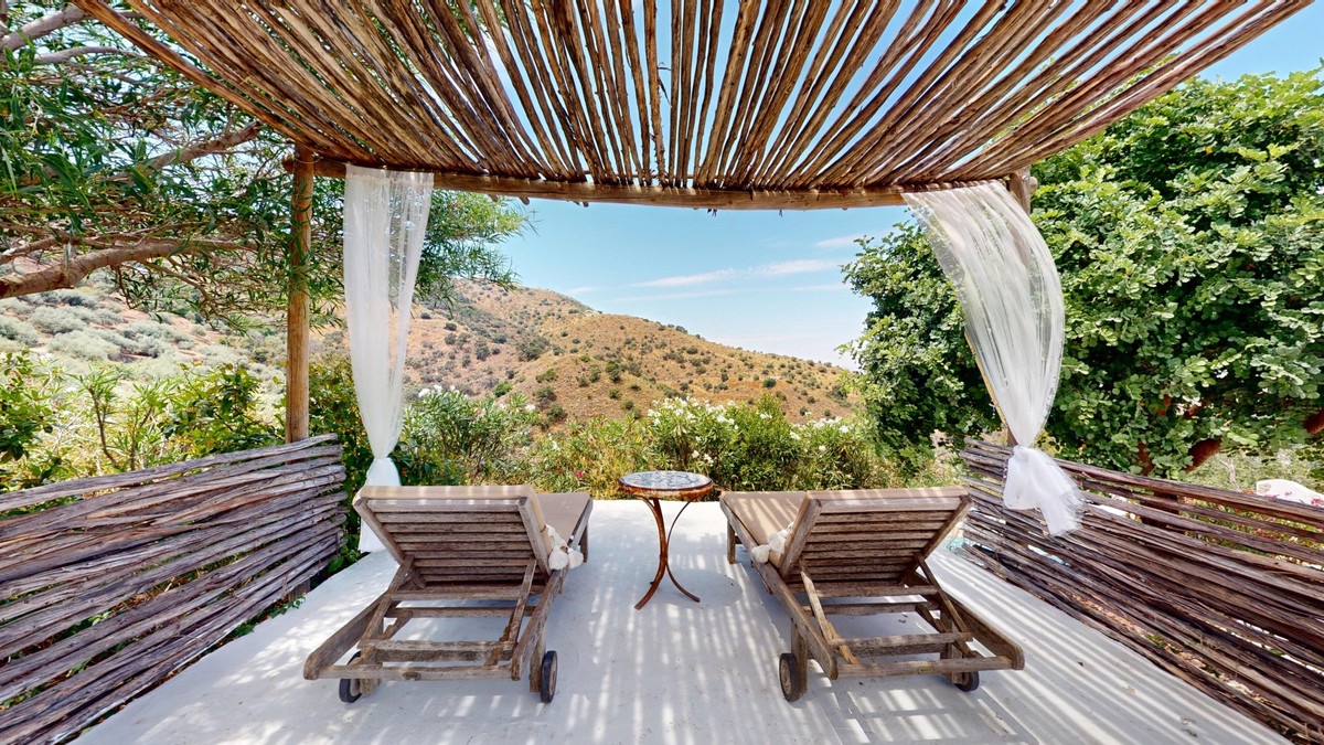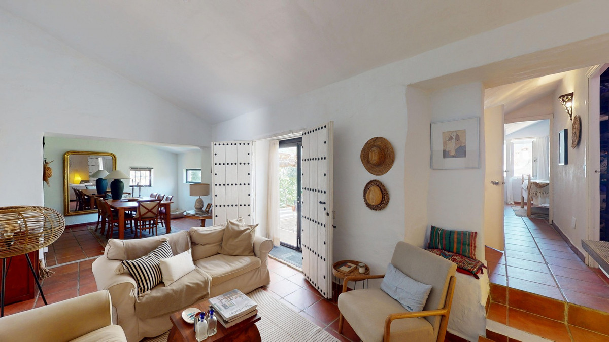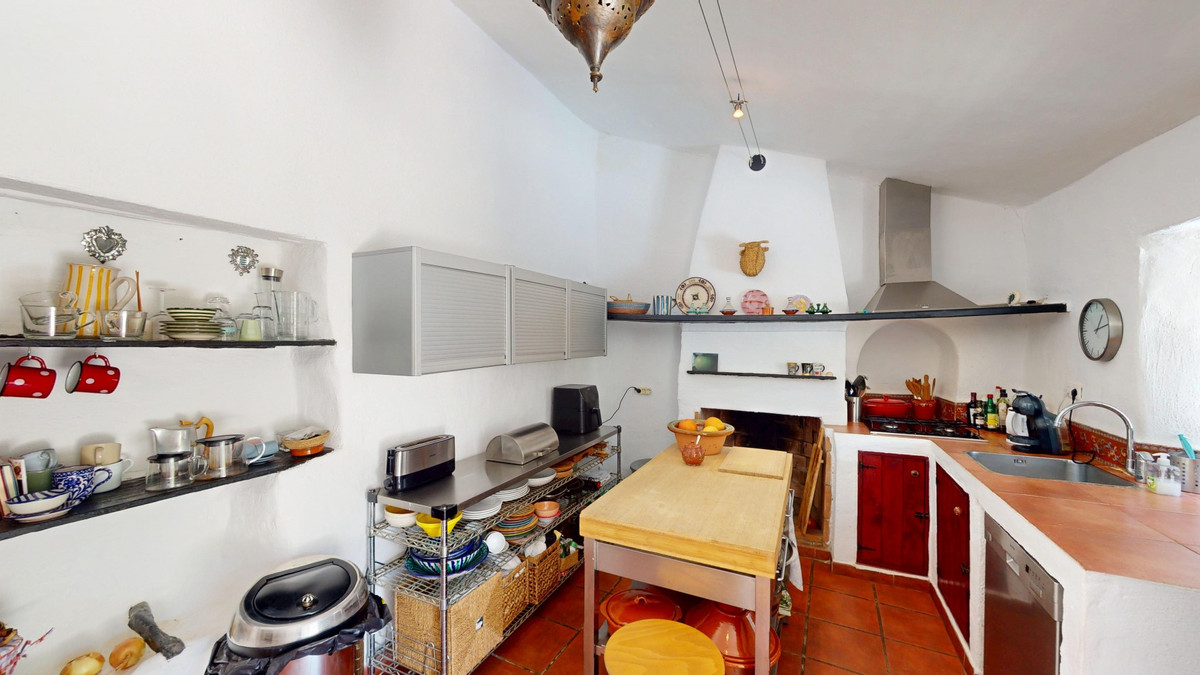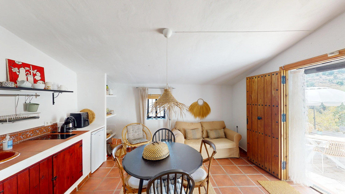 Niché dans les collines d'Arenas, à Malaga, ce charmant cortijo est bien plus qu'une simple maison : c'est un havre de paix méditerranéen empreint de caractère et de sérénité. Divisé en trois appartements indépendants, il se prête parfaitement à une charmante maison d'hôtes ou à une spacieuse résidence familiale, offrant flexibilité, confort et authenticité. L'appartement principal comprend deux chambres et deux salles de bains élégantes, chacune dotée d'une douche à l'italienne et de détails soignés tels que des vasques en marbre et des carreaux à motifs. L'espace de vie ouvert est chaleureux, avec son sol en terre cuite, son canapé d'angle gris clair, ses touches de rotin et son lustre en cristal étincelant. La cuisine est à la fois belle et fonctionnelle, avec ses meubles blancs, ses carreaux colorés et ses appareils électroménagers modernes, dont un lave-vaisselle et un four. Le deuxième appartement est un refuge intime et lumineux d'une chambre. Bien que compact, il offre tout le nécessaire : une kitchenette, une salle de bains chic avec une douche carrelée à motifs de feuilles tropicales et des touches élégantes comme des lustres et des miroirs décoratifs. Le rotin, la terre cuite et les détails tressés apportent chaleur et texture à chaque recoin. Le troisième appartement offre un agencement bien pensé avec une chambre, une salle de bains, un bureau, une cuisine et un séjour. Les murs blanchis à la chaux, la cheminée et les grandes fenêtres lui confèrent une atmosphère lumineuse et aérée, tandis que les placards de cuisine rouges et le mobilier rustique y ajoutent une touche de personnalité. Chaque pièce est ornée d'éléments artistiques, d'un éclairage unique et d'une décoration artisanale. Mais c'est l'espace extérieur qui confère à cette propriété toute sa magie. Le cortijo est entouré de vues imprenables sur les montagnes, et le jardin regorge de charme : sols en pierre naturelle, terrasses ombragées, coins salon intimes, une méridienne pour des après-midi de détente et une piscine aux eaux turquoise scintillantes. La cuisine d'été couverte est un véritable atout, avec ses carreaux faits main et son plan de travail artisanal qui témoignent du soin et de l'amour apportés à chaque détail de cette maison. Chaque recoin de ce cortijo est plein de caractère, des tentures murales artistiques aux luminaires artisanaux, en passant par la sensation de calme qui vous enveloppe dès votre arrivée. Que vous recherchiez une retraite paisible ou que vous souhaitiez accueillir des hôtes dans un Bed & Breakfast d'exception, ce joyau andalou est l'escapade idéale. Nous sommes ravis de pouvoir vous présenter prochainement cette propriété de rêve, en personne ou par visite virtuelle. Car ce monde est unique, à l'image de notre Axarquía. En Andalousie. Sur la Costa del Sol. Ici, sous le soleil…