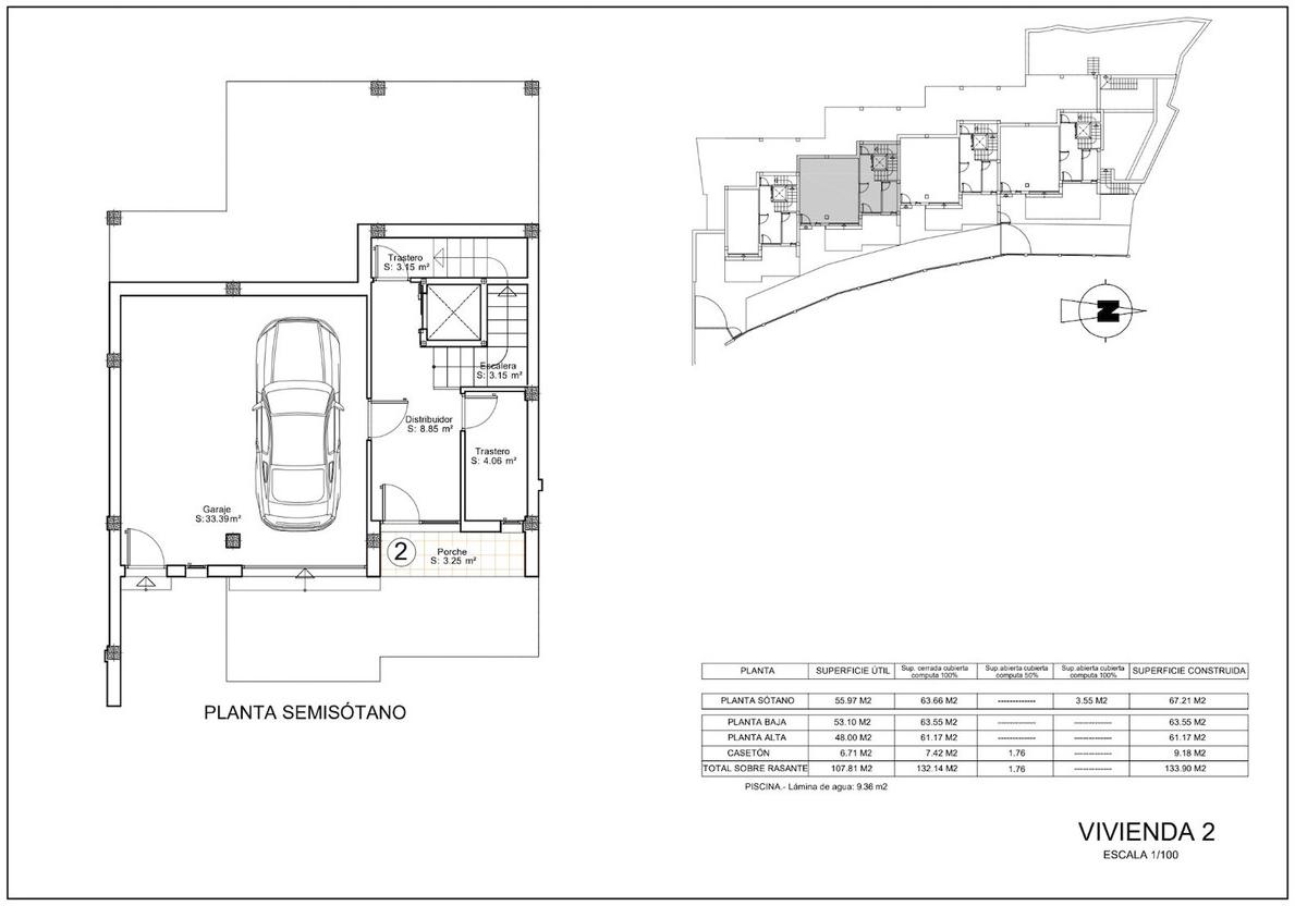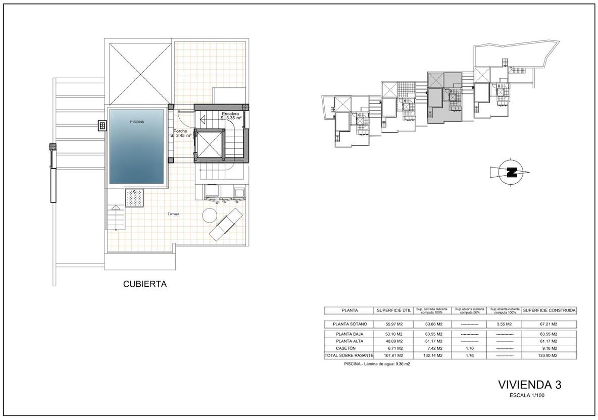 Chaque villa s'étend sur trois niveaux et comprend 4 chambres, 3 salles de bains, un ascenseur privé, un garage et une terrasse sur le toit avec piscine privée, idéale pour profiter du soleil et d'une vue imprenable en toute intimité.
