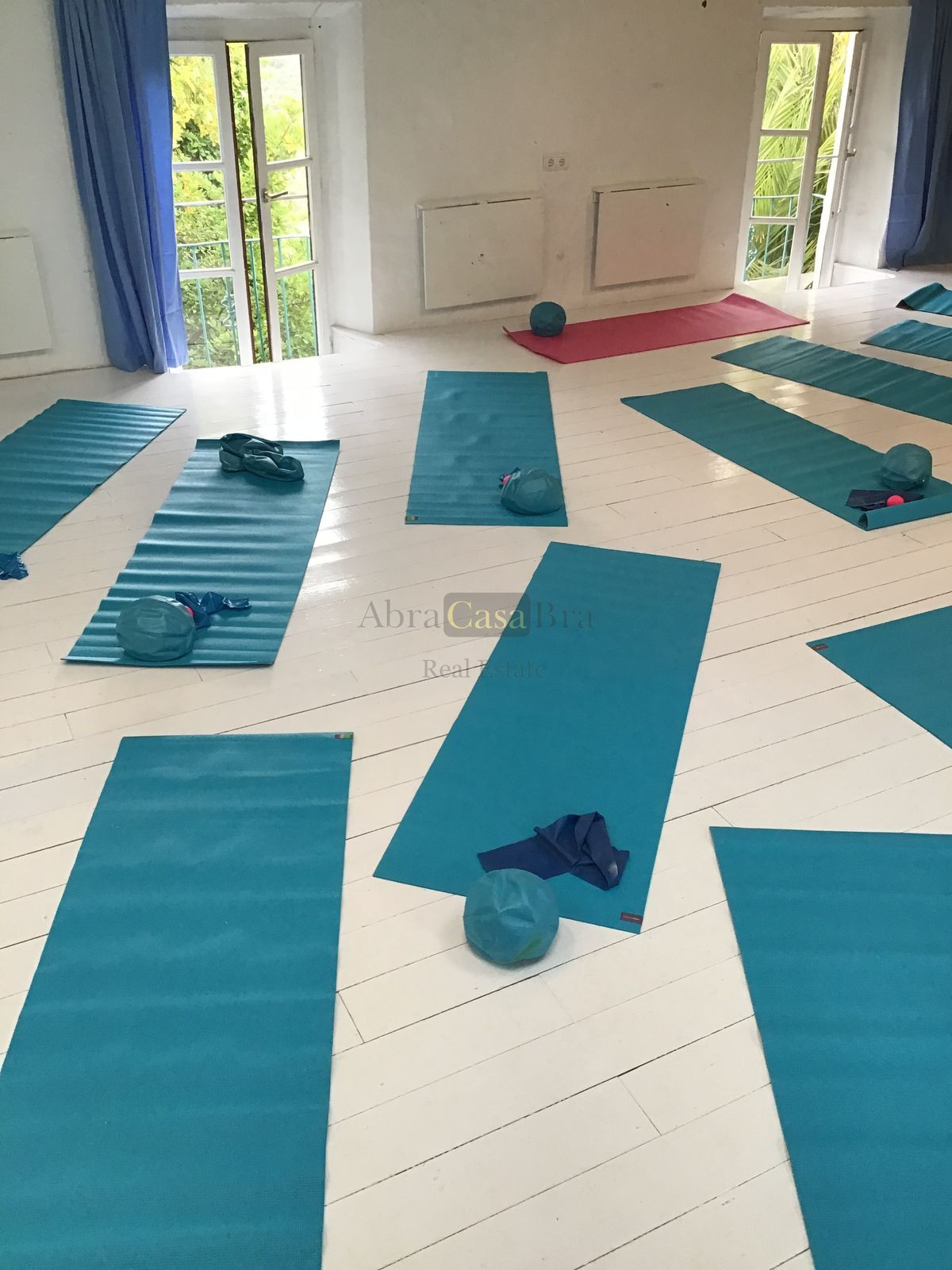 Sur ce terrain magnifiquement paysagé se trouve un grand studio actuellement utilisé pour des activités de groupe telles que le yoga et la peinture.
