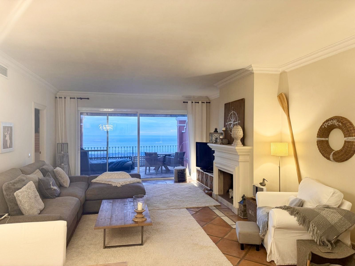 The penthouse features a bright and spacious 45 m² living and dining area with a fireplace and an ideal south-west orientation, ensuring sunshine throughout the day. It offers two generous bedrooms, each with en-suite marble bathrooms, a built area of approx. 110 m², and a 20 m² terrace—perfect for relaxing while enjoying the magnificent coastal vistas.