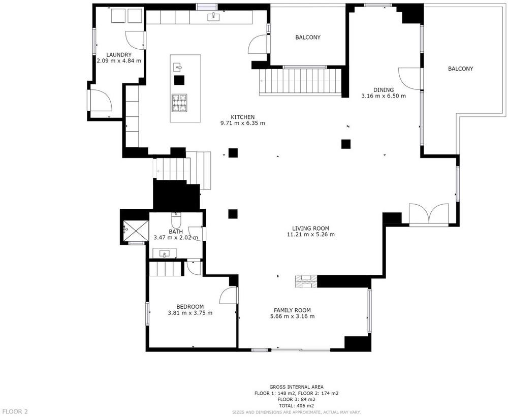 Inside, the living area exudes understated grandeur, featuring a large dining table and expansive windows framing the horizon. The state-of-the-art open-plan kitchen is fully equipped with premium appliances, generous storage, and exquisite finishes to satisfy even the most discerning gourmet.