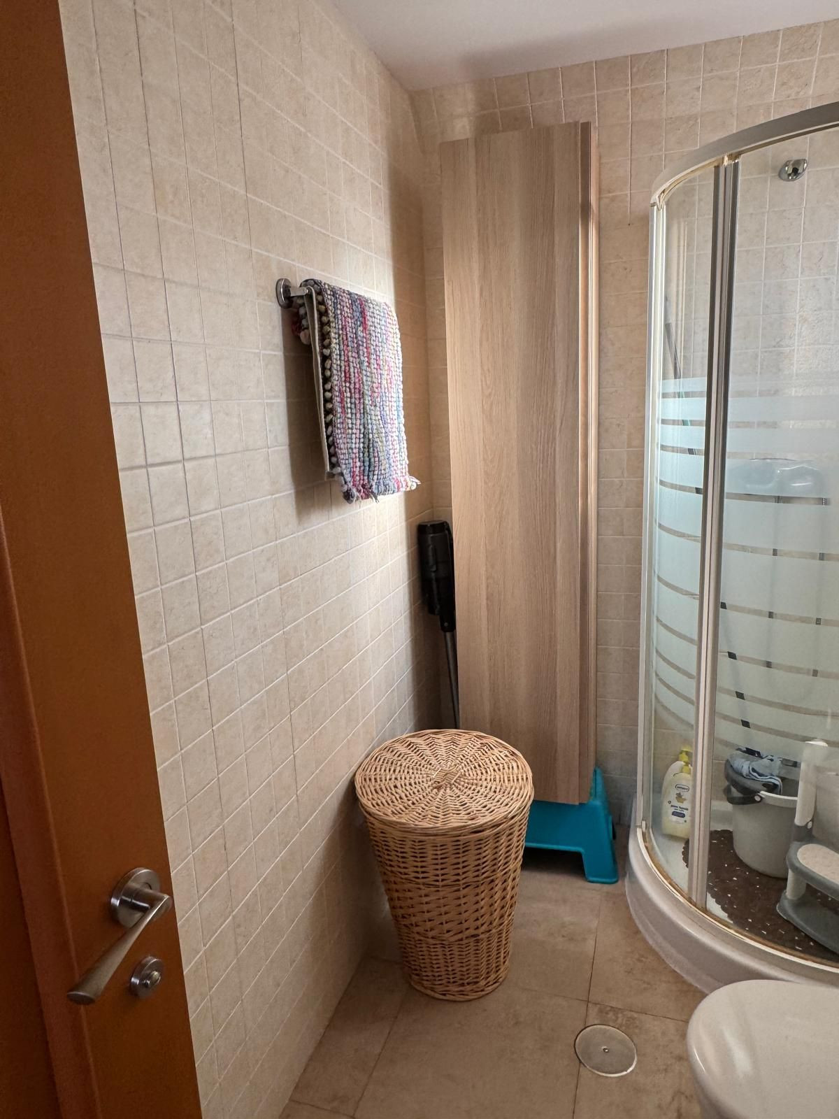 L'appartement en duplex est accessible par l'entrée principale au rez-de-chaussée, tandis que l'étage supérieur, offrant une vue sur la mer et les environs, lui confère l'appellation de penthouse. Les places de parking couvertes, d'une superficie totale de 82 m², permettent de garer facilement une ou deux voitures. Elles se situent de l'autre côté de l'appartement, à quelques mètres de l'entrée.