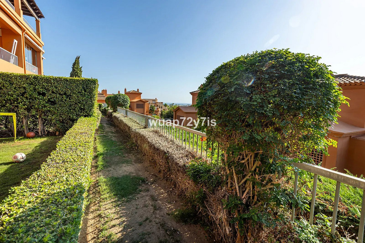 Located in the renowned Benatalaya urbanization—one of Estepona’s most private and secure gated communities—this elegant ground-floor residence offers exceptional tranquility. Its corner position and secluded private garden create a peaceful haven surrounded by beautifully landscaped Mediterranean greenery.