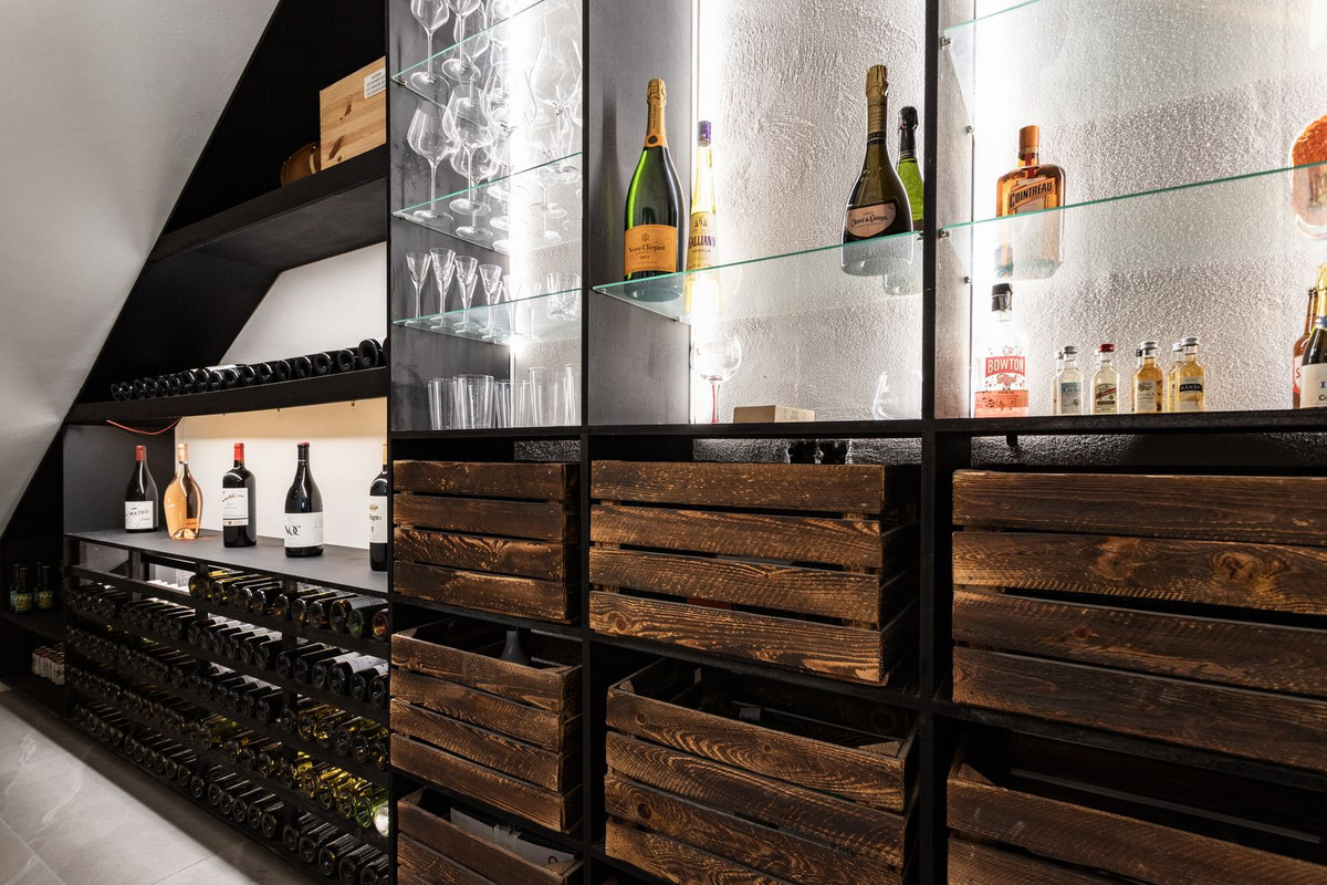 The ground floor is designed for socializing and enjoyment – it features expansive living areas with a stylish kitchen and bar, as well as an elegant wine lounge, ideal for wine enthusiasts.