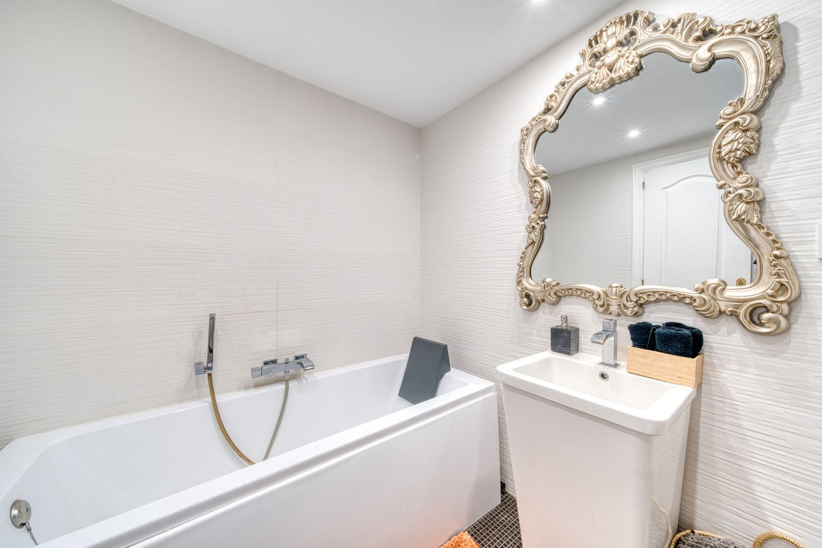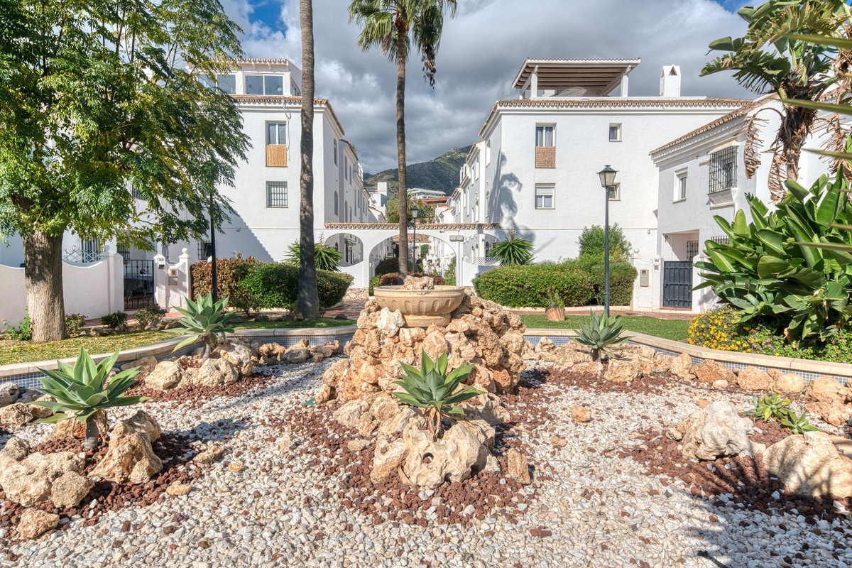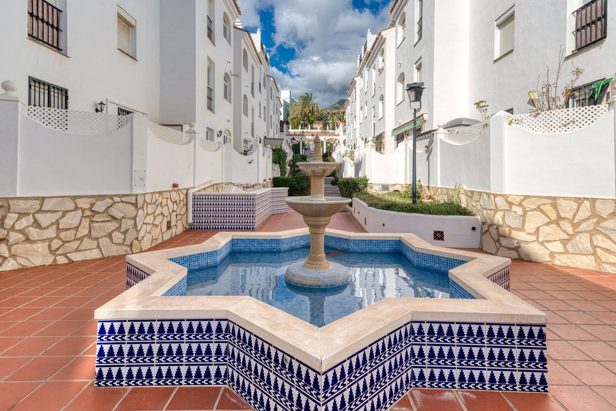 Les deux chambres doubles offrent un havre de paix et de confort. La chambre principale dispose de sa propre salle de bains privative, tandis que la seconde chambre offre une grande flexibilité pour accueillir des invités, la famille ou pour le télétravail. Chaque salle de bains est équipée d'installations modernes et d'un carrelage raffiné, alliant fonctionnalité et élégance discrète. Le cadre exceptionnel contribue à un cadre de vie privilégié. Pueblo del Sol est réputé pour ses façades blanchies à la chaux, ses toits de tuiles, ses bougainvillées en fleurs et ses ruelles piétonnes tranquilles qui créent une authentique ambiance andalouse. Au cœur de la résidence se trouve une magnifique piscine entourée de verdure, un lieu serein idéal pour se détendre durant les longs étés de la Costa del Sol.