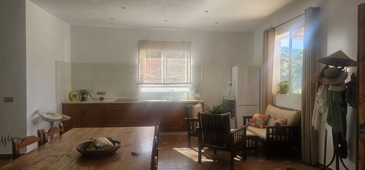 Sur ce terrain se dresse une maison de plain-pied confortable, récemment légalisée, d'une surface habitable de 107,45 m². Elle offre un agencement ouvert combinant salon, salle à manger et cuisine, ainsi que trois chambres et une salle de bains, le tout conçu pour le confort et pour optimiser la lumière naturelle.