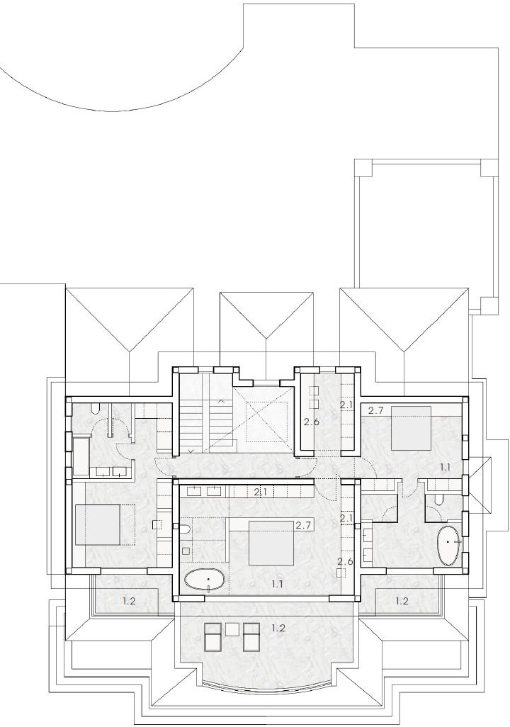 Depuis le hall, un escalier mène au premier étage, où se trouvent trois chambres magnifiquement aménagées, dont deux avec salle de bains privative.