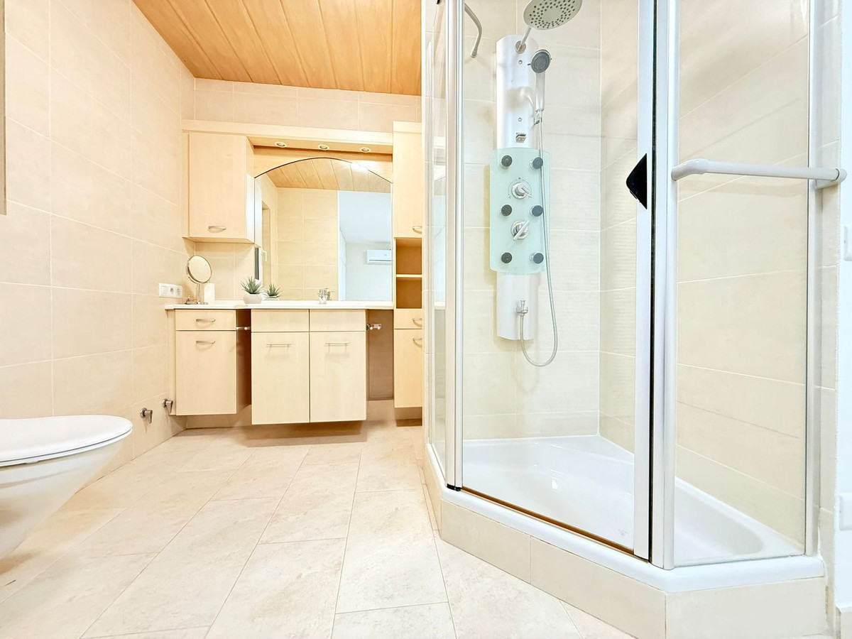 La cuisine est entièrement équipée avec une plaque à induction, un four, un micro-ondes et un lave-vaisselle. L'eau chaude est fournie par un chauffe-eau solaire, tandis que le logement est chauffé et climatisé (chaud/froid).