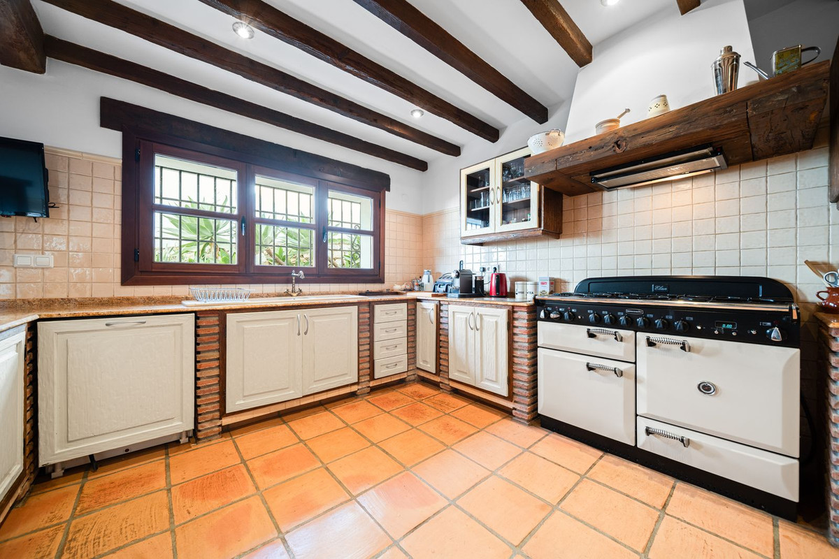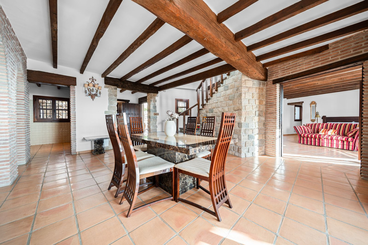 La villa est en excellent état et séduit par son caractère andalou authentique : de magnifiques poutres en bois, des détails en brique et en pierre, et une élégante finition rustique qui crée une atmosphère chaleureuse et accueillante.
