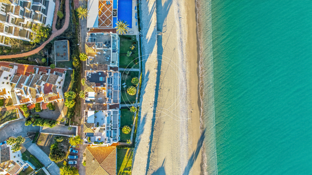 Le complexe présente une architecture andalouse classique, une grande piscine commune entourée d'une végétation luxuriante et un accès direct à la plage et à la promenade du bord de mer, idéal pour des promenades tranquilles, du vélo ou tout simplement pour profiter du climat méditerranéen.