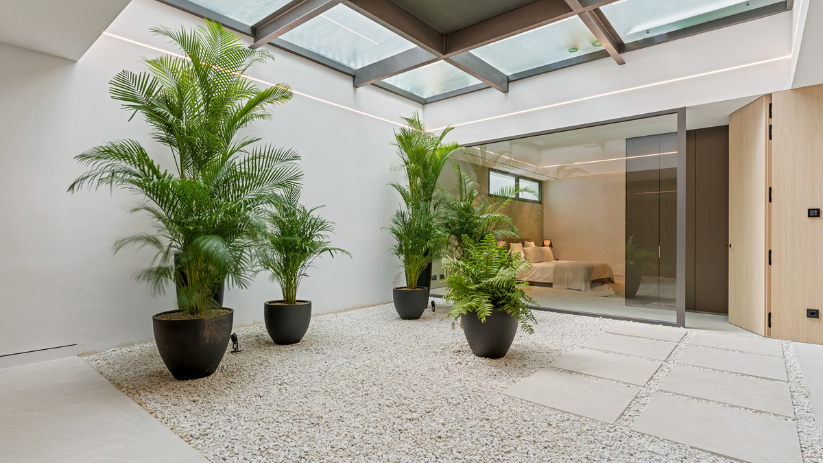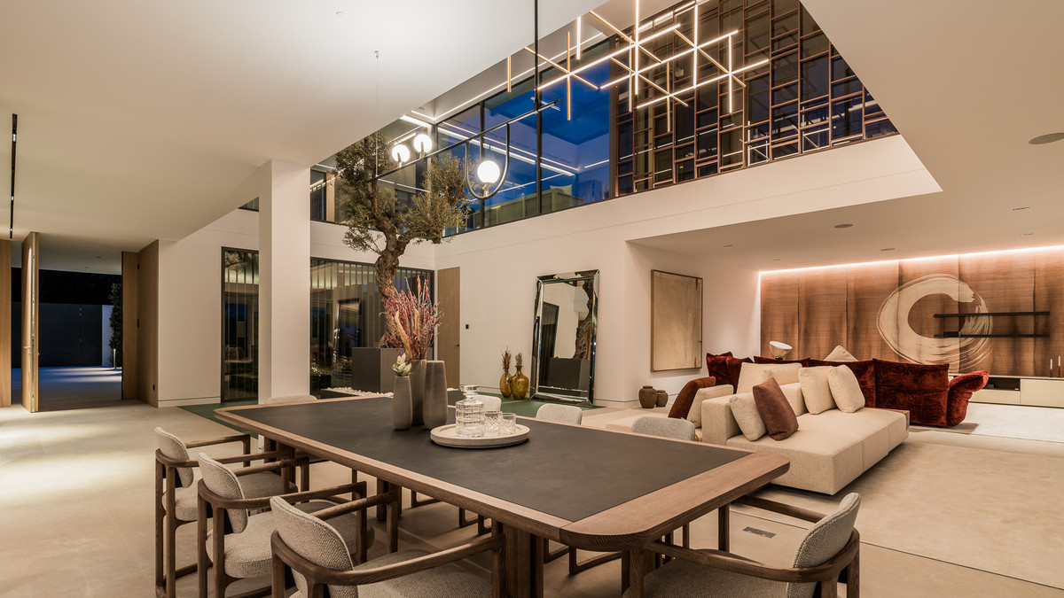 L'intérieur de cette splendide propriété comprend cinq chambres et cinq salles de bains privatives, créant une demeure spacieuse et raffinée, ornée de matériaux d'une qualité exceptionnelle. Cette résidence offre de généreux espaces de vie intérieurs et extérieurs, parfaits pour profiter pleinement du climat exceptionnel de la région tout au long de l'année. Le terrain abrite deux piscines privées d'une beauté sereine et un jardin verdoyant offrant une vue imprenable sur la mer.