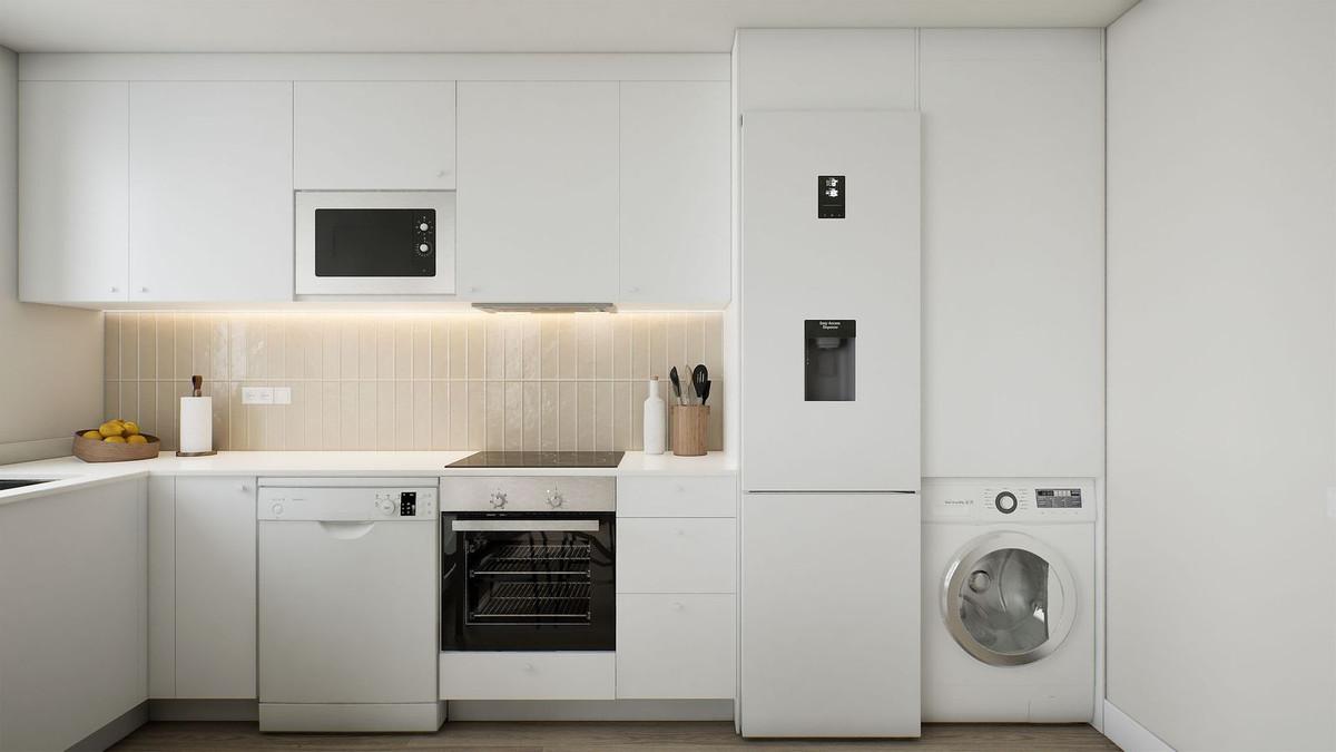 The property is located on the 1st floor, with an elevator. It has a total area of ​​64 m², distributed in a living room and dining room, an open-plan equipped kitchen, 2 bedrooms and 2 bathrooms.